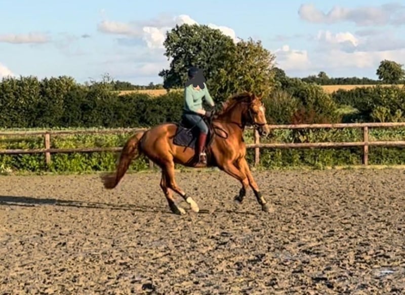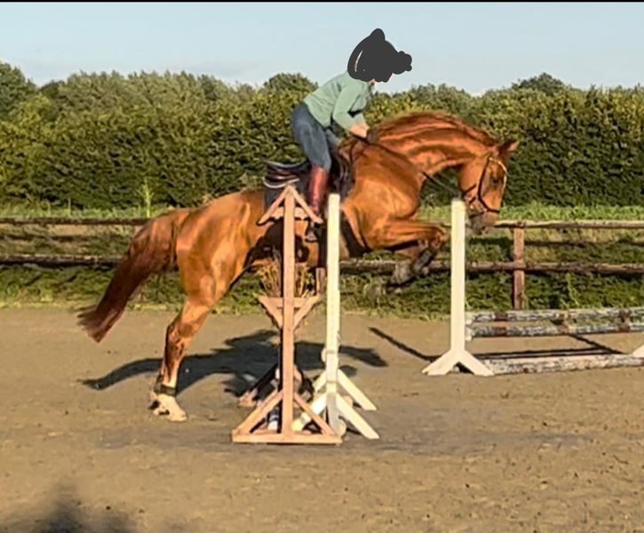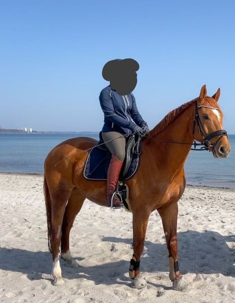 For sale is a beautiful Mecklenburg Warmblood gelding, born in 2015. This elegant chestnut not only impresses with his appealing appearance but also with his excellent temperament. With a height of 172 cm, he is the ideal partner for ambitious riders who want to enjoy their horse in both dressage and leisure. He shows a lot of talent and willingness to learn in dressage work and enjoys the work. He has started with first L-level lessons, transitions from canter to walk, simple changes, and flying changes. I can very well imagine him in a family, as he is also used to being ridden by beginners and is very, very kind! We have been to off-site training a few times and jumped a small E course, including water jumps, although that was nearly 2 years ago. At competitions, he participated in rider competitions with his riding partner and was excited but absolutely reliable and well-behaved. Loading onto the trailer, farrier visits, and veterinary care are all very straightforward. Currently, he has 2 shoes but is also familiar with being barefoot or having all four shoes. Trail riding is a dream with him; whether in a group or alone, if he is a bit scared of something, he simply stops for a moment to look. He is used to going in the front, middle, or back and has no idea about overtaking. We are selling him for personal reasons and truly with a very heavy heart. He is only to be given into loving hands. Due to this, he is currently not in full training. He can also be sold with complete tack, including jumping saddle, dressage saddle, etc. For more information and to arrange a viewing, I am happy to assist you.