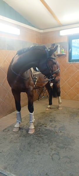 12 jähriger Mecklenburger Warmblutwallach sucht aufgrund von Reitsportaufgabe ein tolles neues Zuhause. In den letzten 7 Jahren Freizeit Dressur bis A/L Niveau geritten. Brav im Umgang und unter dem Sattel. Kein Beißen, Treten o.ä.. Verzeiht auch mal Reiterfehler. Geht brav ins Gelände, am liebsten mindestens zu zweit Barhufer, herdenverträglich (kennt sowohl Boxen-als auch Offenstallhaltung), schmiede -und verladefromm. Ein toller Partner, für den ich mir ein tolles Zuhause als gehobenes Freizeitpferd wünsche. Verkauf erfolgt mit sehr umfangreichen, hochwertigen Zubehör.