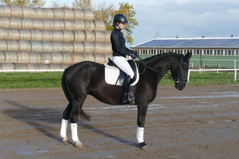 Leo: - Compact type with a smaller frame - Light in movement and comfortable in the saddle - With a positive work attitude - Leo was born, raised, and gently trained at Ganschow stud farm