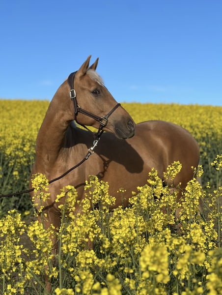 Bloodline: Sire: Quaside MD / Dam: Fürst Fugger Height: 16.1 hh Gender: Gelding Color: Palomino Description: Hansi is a stunning, expressive gelding with an appealing pedigree and good basic gaits. He was professionally backed in 2023; however, further riding attempts could not be continued due to lack of time and personal circumstances on my part. Hansi is very sensitive, attentive, and requires an experienced and patient handler who can calmly, consistently, and gently bring him back into work. Only suitable for experienced horse people or trainers who enjoy developing a young horse with potential. Not suitable for beginners! Health: The health check from 2021 is available. He is regularly vaccinated and dewormed. Due to personal reasons, I am unable to give Hansi the attention and training he deserves. Therefore, I am looking for a place where he can start anew in peace. This is not an urgent sale, and he should only go to an absolutely experienced handler. Location: Near Upahl, 23936 Contact: 0173 8225939