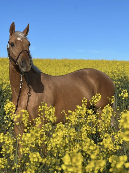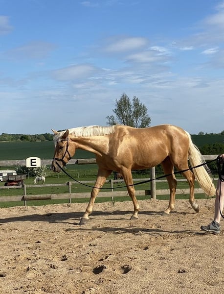 Bloodline: Sire: Quaside MD / Dam: Fürst Fugger Height: 16.1 hh Gender: Gelding Color: Palomino Description: Hansi is a stunning, expressive gelding with an appealing pedigree and good basic gaits. He was professionally backed in 2023; however, further riding attempts could not be continued due to lack of time and personal circumstances on my part. Hansi is very sensitive, attentive, and requires an experienced and patient handler who can calmly, consistently, and gently bring him back into work. Only suitable for experienced horse people or trainers who enjoy developing a young horse with potential. Not suitable for beginners! Health: The health check from 2021 is available. He is regularly vaccinated and dewormed. Due to personal reasons, I am unable to give Hansi the attention and training he deserves. Therefore, I am looking for a place where he can start anew in peace. This is not an urgent sale, and he should only go to an absolutely experienced handler. Location: Near Upahl, 23936 Contact: 0173 8225939