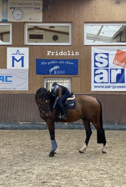 For Sale: Mecklenburg Warmblood Gelding We are offering a stunning Mecklenburg Warmblood gelding, born in 2017. Our ‘Fridolin’ impresses with his elegant appearance and friendly nature. Standing at 173 cm, he is suitable for taller riders as well. The gelding is versatile in jumping and already demonstrates considerable talent along with a solid basic training. He is well-schooled, attentive, and always eager to learn new tasks. Thanks to his friendly temperament, he is suitable for both ambitious riders and leisure riders alike. He has been used mainly for recreational riding by a young girl in recent years. He has been in our training for the past four months and is now looking for a new home. His first show jumping courses he completed with flying colors. He has a lot of scope and beautiful basic gaits. Please note that he is somewhat shy around other horses (rarely at home, only a little at the lunging area), so he is not suitable for absolute beginners. If you are interested or would like more information, please feel free to contact me. Viewing and trial rides are available by appointment.