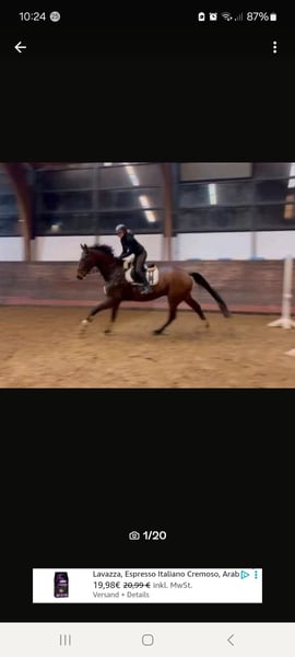 Schweren Herzens in liebevolle Hände zu vergeben, und auch nur wenn alles passt! Nach langem Überlegen habe ich mich schweren Herzens dazu entschlossen, für mein Riesenbaby Aris ein neues, liebevolles Zuhause zu suchen. Aris ist ein Mecklenburger-Wallach, geboren am 21.03.2018, mit einem Stockmaß von 1,73 cm Ich habe ihn selbst gezogen – daher liegt mir sein weiteres Wohlergehen besonders am Herzen. Abstammung & Potenzial • Vater: Arko Junior • Mutter: Pinocchio – Pilot Aris besitzt hervorragende Grundgangarten, viel Potenzial und eine erstklassige Abstammung, die sicher auch für die Zukunft vielversprechend ist. Er befindet sich aktuell noch im Profiberitt bis zum 1.01 und wird dort weiter im Springen gefördert und ausgebilde Eine kleine Akku wurde am 15.12 gemacht und ist ohne Befund super schönes Pferd, Gesund mit stabilen Beinen wie man sich das wünscht meinte der Tierarzt! Aris befindet sich im Moment auf auf ein Solides A Niveau! Charakter & Umgang Aris ist im Umgang ein absoluter Schatz – freundlich, menschenbezogen und sehr verschmust. Er liebt Aufmerksamkeit, steht gern im Mittelpunkt und bringt mit seiner charmanten Art jeden zum Lächeln – ein echter Clown im positiven Sinne. Beim Reiten zeigt er viel Schwung und Energie, weshalb er einen erfahrenen Reiter benötigt, der ihn gezielt unterstützt und ihm Sicherheit gibt. Im täglichen Umgang (Hufschmied, Tierarzt, Entwurmung usw.) ist er absolut brav und unkompliziert. Ausbildung & Haltung • Schonend angeritten mit 4 Jahren • Bodenarbeit, Doppellonge, Fahren vom Boden, Dualgassen, Schrecktraining • Wird überwiegend auf dem Platz und im Gelände (in der Gruppe) geritten • Robust aufgewachsen in gemischter Herde: im Winter auf 3 ha, im Sommer auf 11 ha Weide • Kastriert am 03.09.2020 Aris ist kein Anfängerpferd, aber für einen ambitionierten, einfühlsamen Reiter ein treuer Partner mit großem Potenzial. Gesundheit & Pflege • Barhuf, regelmäßiger Schmied alle 8 Wochen • Influenza & Tetanus geimpft • Zahnbehandlung im Mai 2025 • Osteopathisch durchgecheckt im August 2025 • Keine bekannten Erkrankungen oder Verletzungen (nur übliche Weideblessuren) Einsatz & Wunschplatz Ich verkaufe Aris als Freizeitpferd, da er bei mir auch ausschließlich so eingesetzt wurde. Mit weiterer Förderung wäre aber sicher auch der Start auf kleineren Turnieren denkbar. Ich wünsche mir für ihn ein Zuhause mit viel Auslauf, Weidegang und Herz, wo er nicht als Sportgerät gesehen wird, sondern als Partner und Freund. Ein Kennenlernen und Probereiten (auf eigene Gefahr) ist nach Absprache selbstverständlich möglich. ❌ Kein Notverkauf, nicht zur Verfügung! ☎️ 01520 3643167 Liebe Grüße Anja