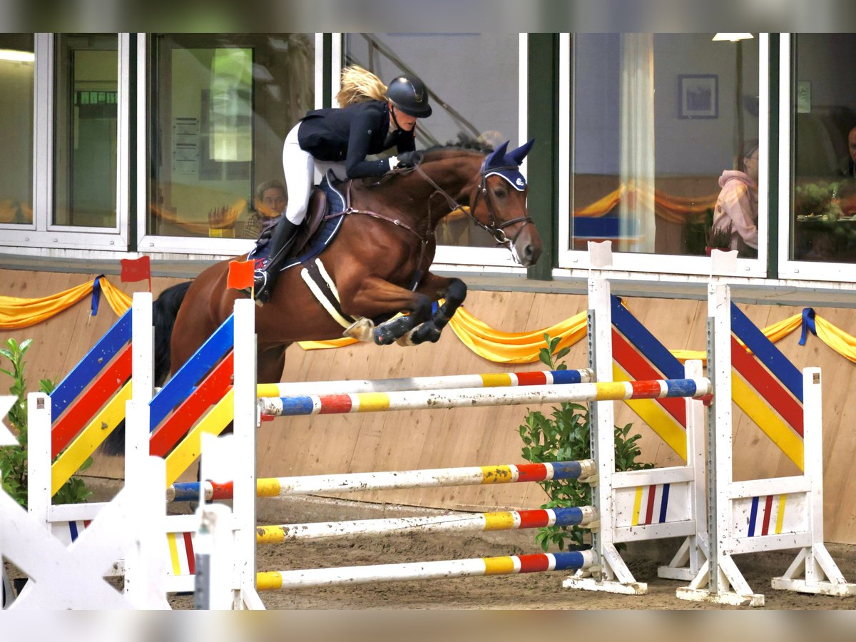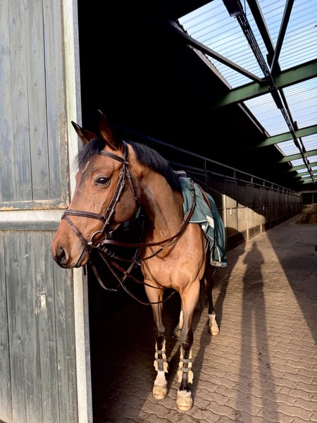 This handsome gelding is 9 years old and looking for a new home. He is an alert and motivated horse who always enjoys his work and loves treats. He is also well-behaved in handling. The gelding has competed internationally up to 1.25 m and nationally up to 1.20 m. He also has experience in show jumping up to class S* (1.40 m). He is confident cross-country, easy to load, and also well-behaved at the blacksmith. He is not ideally suited for beginner riders; some experience is recommended. The horse is located in 32052 Herford. If you are interested or have further questions, please feel free to contact me at 0172 4679339.