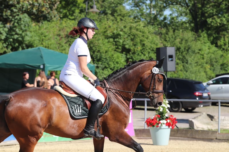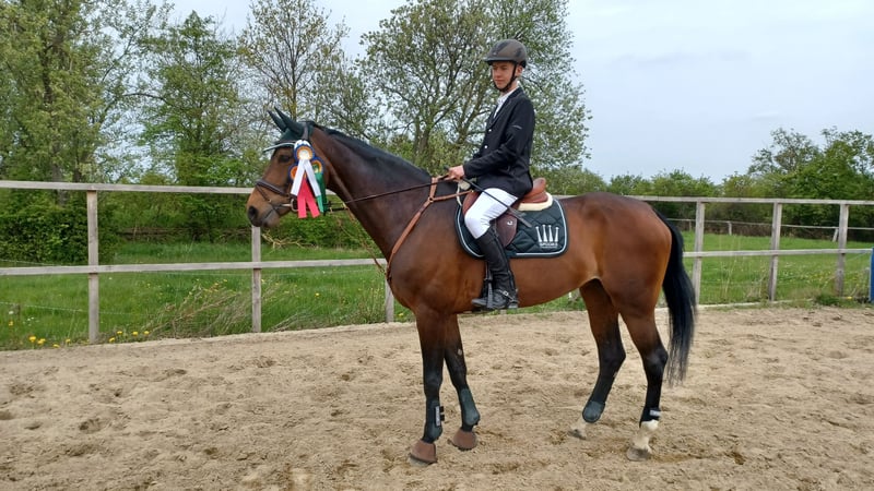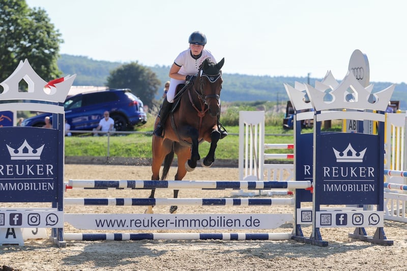 We are selling our lovely mare. She is a state premium mare. She is very well-behaved and sweet with other horses and in handling. My brother had her as a successor horse to his pony. She is the perfect horse for transitioning riders and suitable for amateurs and young people, as she always shows a calm and affectionate character. In the last 3.5 years, she has been presented by my brother and me in show jumping from level E to A** and has been placed. Previously, she was presented up to M level in show jumping and placed in L level. She is also very well-behaved at competitions. In dressage, she is trained up to level A and would also be suitable for competing in dressage tournaments. In the field, she is very well-mannered, whether alone or in a group. She also travels well in a trailer. She is very calm with the farrier. She has received regular deworming and dental checks. She has been vaccinated regularly against influenza, herpes, and tetanus. She is kept in an open stable with us but is also familiar with box stalls. A jumping saddle and other equipment can also be purchased. We are selling Erika only because we can no longer give her the time she deserves. We are looking to sell her only to good hands. If interested, I am happy to send videos of her dressage and jumping and am available for any questions.