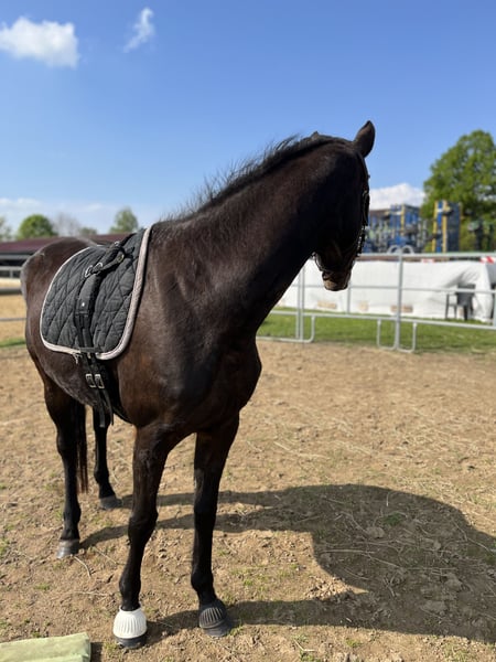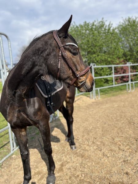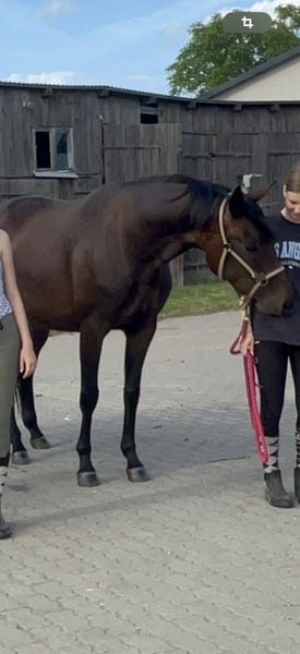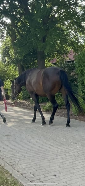 For Sale: Mecklenburg Warmblood Mare This beautiful Mecklenburg Warmblood mare was foaled in 2021. As a foal, she received a Verband foal premium. She presents with an elegant dark bay coat and measures 16.1 hands. This talented mare is particularly suited for dressage and already shows promising potential in her training, although she is quite reserved. Her friendly nature makes her an ideal partner for ambitious riders. She is approachable and friendly with people, easy to handle at the blacksmith, and has a pleasant temperament. As she is still very cautious, she is looking for a loving home where she can be both nurtured and challenged. Please feel free to contact us if you are interested or have any questions!