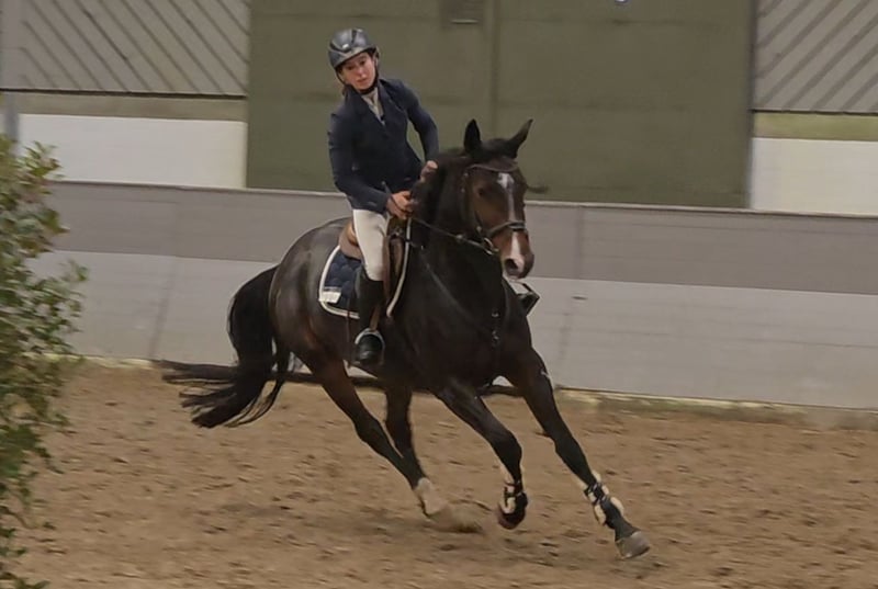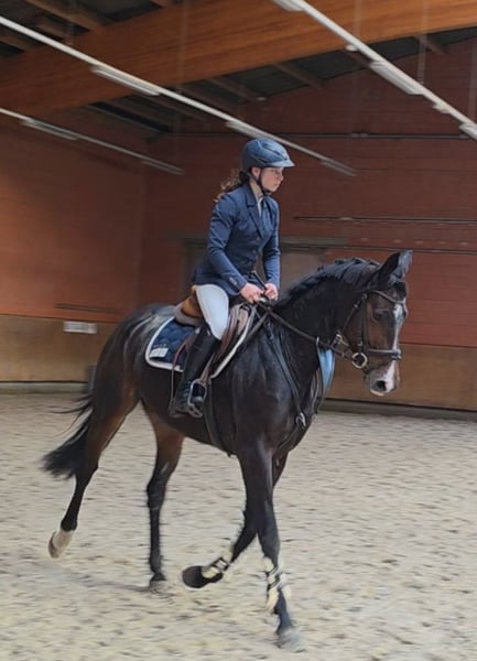 Amara ist eine hübsche Stute mit guter Rittigkeit und viel Springtalent. Sie hat ansprechende Bewegungen und zeigt sich mit viel Spaß am Springen. Amara ist sehr ehrlich, mutig und ehrgeizig am Sprung, dazu auch dressurmäßig schön zu reiten . Sie ist mit einem Mädchen Springpferde A ** platziert und hat Vermögen für deutlich mehr ( M/S*). Sie hat durchaus Energie ist dabei aber gut händelbar und immer lieb. Amara ist auch im Umgang sehr abgeklärt und unkompliziert, auch auf dem Turnier. Besonders cool und gern geht sie ins Gelände. Sie hat auch schon Erfahrung in Geländepferdeprüfungen gesammelt. Auch allerlei Späße die Mädchen so treiben kennt sie. ZB ohne Sattel ins Wasser reiten, nur auf Stallhalter, Geschicklichjeitsparcours etc. Einfach ein Pferd, wie man es sich nur wünschen kann. 5j Mecklenb. St. v. , 1.65m , v. Lenin (Light On) x Sandro Star Guter Röntgentüv und Klinische Aku vorhanden Video: https://youtu.be/PdkU6Xl70NY?si=nAtNYoQp9wi1LHhN Noch mehr Fotos, Videos und kleine Einblicke in den Alltag unserer Pferde gibt’s auf Instagram: [maresi_lange]. Schauen Sie gern vorbei und lernen Sie unsere Vierbeiner schon vorab ein wenig kennen. You can find more photos, videos and little insights into the everyday life of our horses on Instagram: [maresi_lange]. Feel free to take a look and get to know our horses a bit better in advance. Weitere Pferde auf meiner Homepage MaresiLange.de oder auf Anfrage. Die Beschreibung des Pferdes beruht auf subjektiven Eindrücken und Erfahrungen unsererseits und ist keine Beschaffenheitsvereinbarung und Zusicherung von Eigenschaften. Probereiten erfolgt auf eigene Gefahr. Verkauf erfolgt im Auftrag. Für das Vorstellen/Probereiten des Pferdesk erlauben wir uns, eine Aufwandsentschädigung in Höhe von 30 Euro zu berechnen. Diese wird natürlich bei Kauf des Pferdes verrechnet.