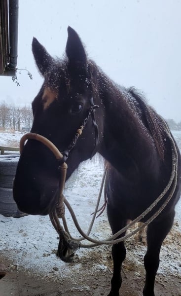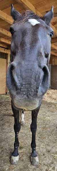 Mein Pferd Romeo sucht ein liebevolles Zuhause. Wunderschöner Farbwechsler Wallach zwischen dunkelbraun und schwarz, ein Slowakisches Warmblut, 13 Jahre alt mit 157 cm Stockmaß. Er ist freundlich und eingeritten, benötigt aber einen erfahrenen Reiter der ihm Sicherheit gibt, weil er schreckhaft auf unerwartetes reagiert. Er mag es aber auch, wenn man nur mit ihm spazieren geht. Romeo läuft barhuf und hat keine bekannten gesundheitlichen Einschränkungen. Er ist brav beim Hufschmied und wird im 10 Wochen Rhythmus ausgeschnitten. Bis 2023 wurde er kalt Beschlagen, danach nicht mehr, weil der Hauptaufenthalt auf der Weide ist, er läuft aber auch auf der Straße oder Feldweg ohne Probleme. Beim Putzen und Satteln bleibt er geduldig stehen. Er wird regelmäßig entwurmt. Er ist seit Mitte 2022 mit Jamie bei uns Zuhause im Offenstall mit dauerhaften Auslauf auf 400 bis 4000m², je nach Wetterbedingungen. Bei uns hatte er auch Kontakt mit einigen Hunden, Katzen, Hühnern und Kühen (letztere auf dem Nachbargrundstück).