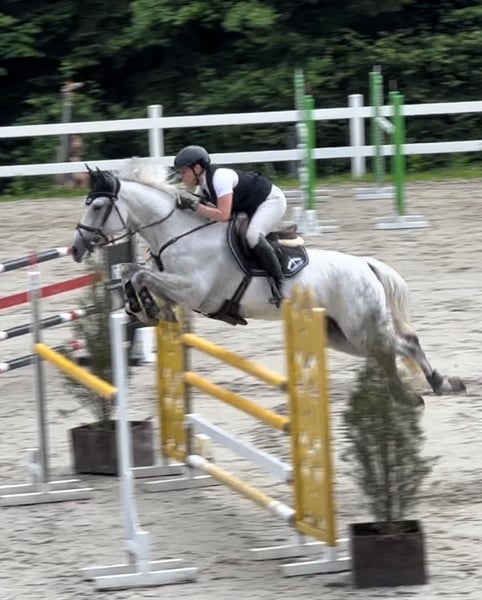 Eine kräftige Stute, geboren 2016, die bis 130 cm erfolgreich im Springen war. Unter dem Sattel ist sie sehr sensibel, vorsichtig und schnell. Während der Wettkämpfe muss man sie nicht antreiben; wenn man sich nur auf den Sieg konzentriert, wird man ihn auch erreichen. Dies macht sie zur idealen Wahl für eine ehrgeizige Kinder- oder Juniorreiterin mit feinem Umgang und ruhigem Geist, die auf verschiedenen Ebenen starten möchte. Sie besitzt eine wundervolle, freundliche Natur und ist in jeder Hinsicht leicht zu handhaben. Obwohl sie bereits Erfahrung im Springen hat, zeigt sie großes Potenzial für Vielseitigkeitssportarten. Falbala machte im letzten Jahr eine Pause aufgrund der Schwangerschaft ihrer Reiterin, ist aber derzeit wieder im Training. Vollständige Röntgenbilder und weitere Videos sind auf Anfrage erhältlich. Für weitere Informationen oder zur Vereinbarung eines Besichtigungstermins können Sie mich gerne per WhatsApp oder E-Mail kontaktieren (z.novakova41100@gmail.com).