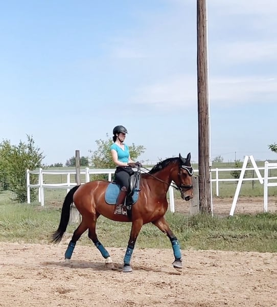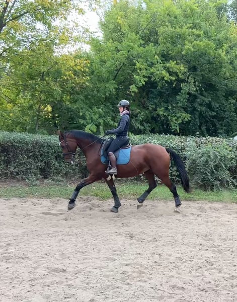 Gréti is a really kind mare. She's not a typical angry, moody mare; even when she's in heat, it's virtually unnoticeable from a riding perspective. She craves affection and care. She loads easily onto a horse trailer with the promise of a few treats, and can be washed and clipped without any issues. She is regularly shod on her front two feet and receives her vaccinations. If you prefer to work slowly with her, she'll adapt and work at that pace. If you accustom her to more energetic work, she will work energetically. If she gets scared of something, she remains controllable and can be stopped. Her fear can be managed with calm and decisive riding, and she will then work well. At competitions and unfamiliar places, she might show a little nervousness but still worked well and she work in concentration. She has no malicious intent. I believe that given 1-2 month to her, she could turn into an excellent horse for children too. Now I am training her for competiton. She is learning the half-pass, the shoulder-in, and the counter-canter. X-ray taken 2.5 years ago showd nothing concerning. She had a ligament strain in one of her front legs, but it's problem-free now, and she is in full training. The reason for selling is that I'd like to buy a young dressage horse :)
