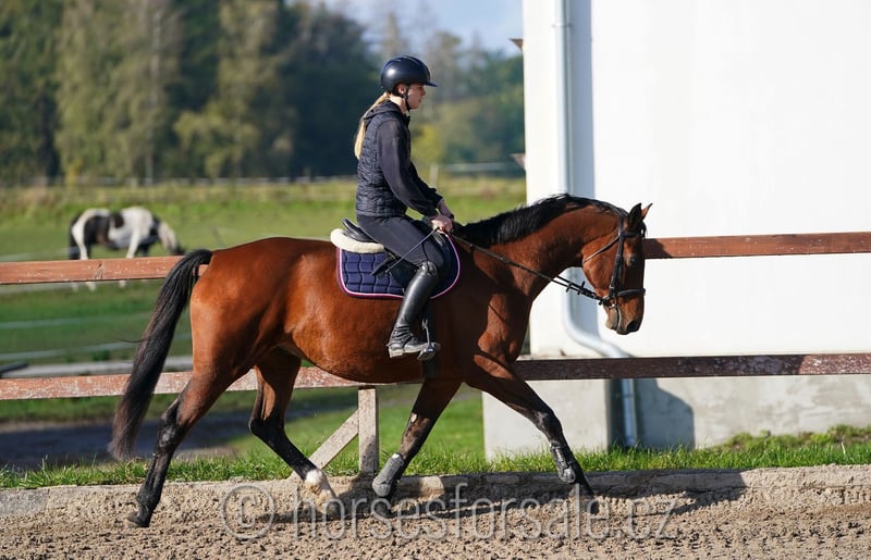 GUMIDEK - horse for hobby riding, allrounder, bargain price Gumidek is a cute gelding for hobby riders, which has not a huge budget. He is fully sound, comes directly from breeder’s hand. Due to lack of time has not done much so far, has been only ridden as a hobby horse. He has very nice movement, so he would suit for dressage ring with some training, he has never jumped under saddle but in freejumping he can show a perfect technique. Gumidek has been ridden by a girl, has snaffle mouth, is being ridden in the trail, would suit for amateur riders, but not for beginners (can be spooky sometimes). Sound (x-rays available), good hooves (running without shoes). NEW Price: 5.500€ More information or videos under +420602862723 https://youtu.be/fxCCVhC_UPo https://youtu.be/CQgLydPXhTk Born: 2015, Height: 165cm, Location: Dard Diamond (Destano) x Carol Location: 45 minutes from Prague, transport can be provided. *** more horses on my website www.horsesforsale.cz ***