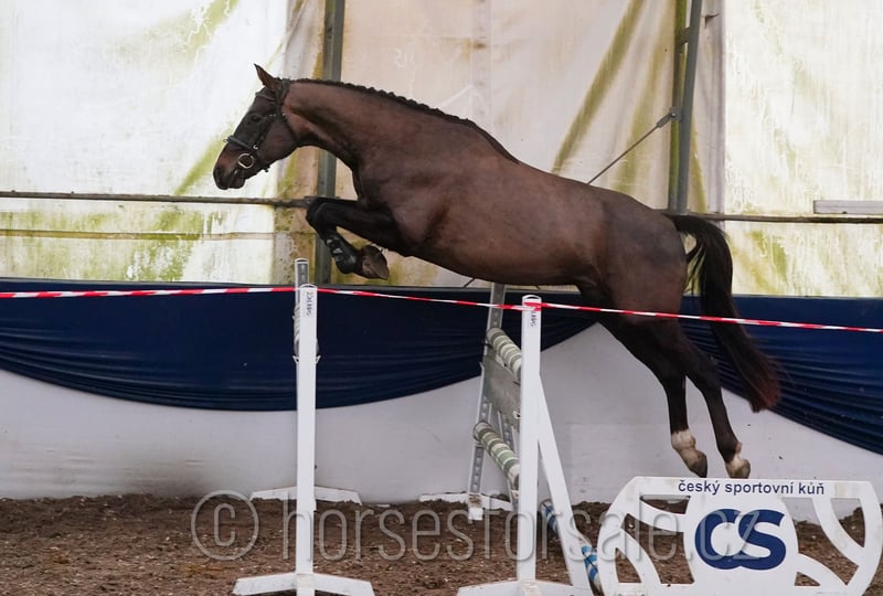 KANDIO - attractive youngster by Kannan, allrounder Kandio is a nice and promising youngster with interesting pedigree, equipped with a good jump and nice movement as well. Started under saddle in the winter, now able to do a small course at home, he already took part on a training out of home and he did it well, is ready for his show debut. A horse with nice brain, willing to learn, directly from breeder’s hand. His half-brother out of the same mother was very successful in show jumping ring up to MT 1:40 and is now being ridden by a junior girl. Current x-rays available. Price: 17.000€ More information or videos under +420602862723 https://youtu.be/3vXJJKK7o0M https://youtu.be/bUTQRyqW9t0 Born: 2022, Height: 165cm, pedigree: Kannan x Sobarde E Location: 1,5 hour from Prague, Czech republic, Central Europe. *** more horses on my website www.horsesforsale.cz ***