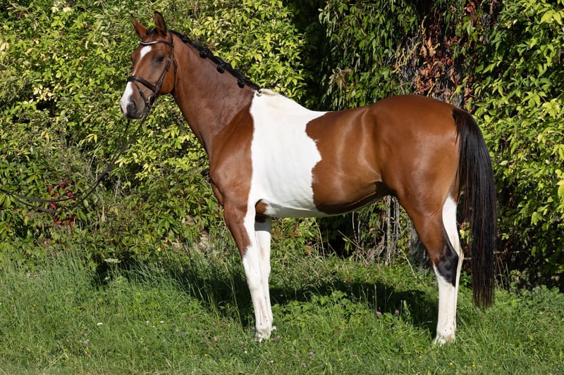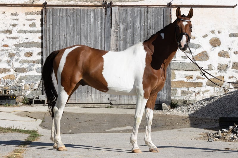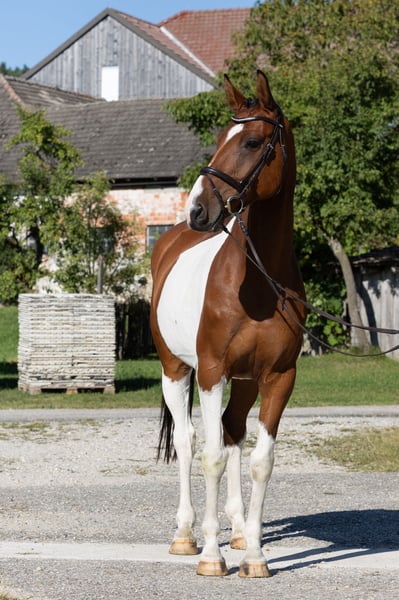 Winnie the Pooh Great gelding in a brown-and-white jacket 7 years old Training level A/L Height 167 cm X-rays ✅ Oberweitersdorf near Linz He has a big heart for eventing and supports younger riders through thick and thin. Absolutely clear-minded, no vices, and he enjoys going out on trail rides to simply relax.