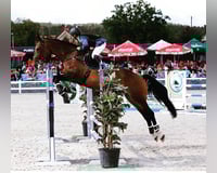 y Sang-chaud y Chevaux de saut d'obstacles y Hongre y Bai y Jument y Chevaux de dressage