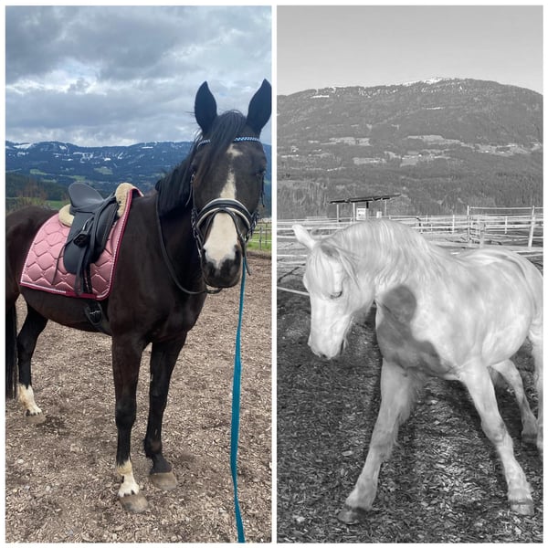 Schweren Herzens verkaufe ich wegen Stallauflösung meine beiden Pferde! Hugo the Boss: Hugo ist ein, absolut braver, 24 Jahre alter, 1,48 m großer Lipizzaner-Mix, der schon vieles erlebt hat. Früher lief Hugo in der Reitschule mit, wo er kleinen Kindern das Reiten beigebracht hat. Dann startete ich mit ihm auf kleineren Turnieren. Hugo ist ein absolutes Verlasspferd und hat keine Unarten. Er hat noch Spaß an Ausritten und kann noch bedingt freizeitmäßig geritten werden. Er ist auf einem Auge blind, was ihn aber überhaupt nicht einschränkt. Shadow River: Shadow ist eine 18-jährige, ca. 1,63 m große Tschechisches Warmblut Stute. Sie wurde bei mir nur freizeitmäßig geritten und ist kein Anfängerpferd. Sie hat keine Unarten, wie Beißen oder Ausschlagen, neigt jedoch dazu etwas nervös zu sein. Man muss ihr beim Reiten viel Sicherheit geben. Bei regelmäßigem Arbeiten macht das Reiten mit ihr aber großen Spaß. Sie neigt im Sommer gelegentlich dazu etwas "Head-Shaking" zu haben, was aber gut händelbar ist, auch beim Reiten. Weil unser Stall aufgelöst wurde, sind die beiden die letzten Pferde bei uns am Stall. Sie sind ein eingespieltes Team, weshalb ich mir wenn möglich ein Zuhause für beide zusammen wünsche. Beide Pferde sind absolut verträglich mit anderen Pferden. Sie wurden seit längerer Zeit nicht geritten, weswegen man sie wieder etwas aufbauen müsste. Der Preis gilt für beide Pferde zusammen. Anfragen gerne an: +43 676 9433416