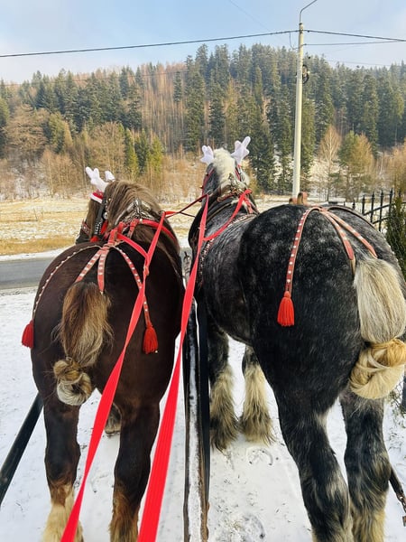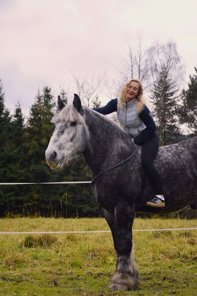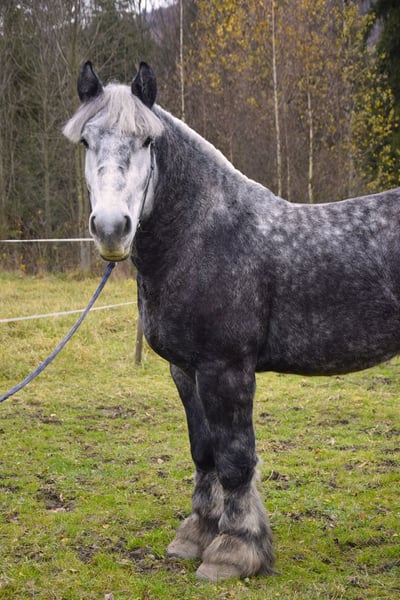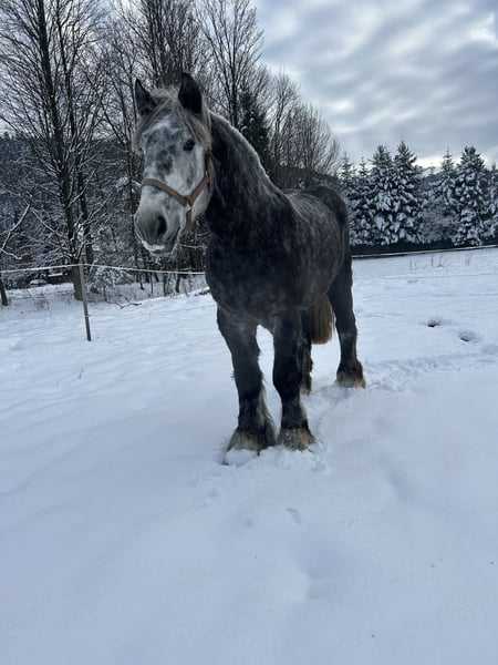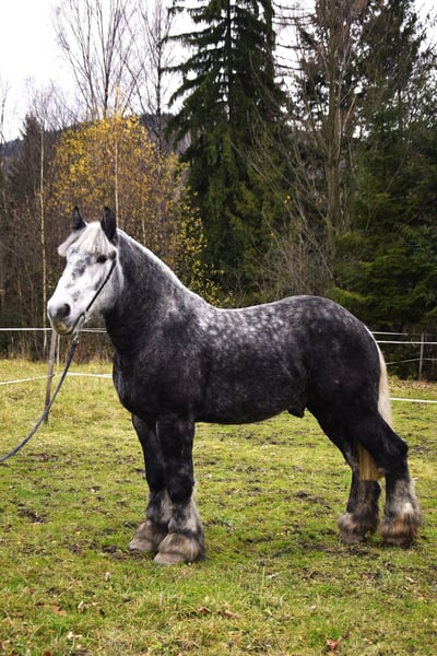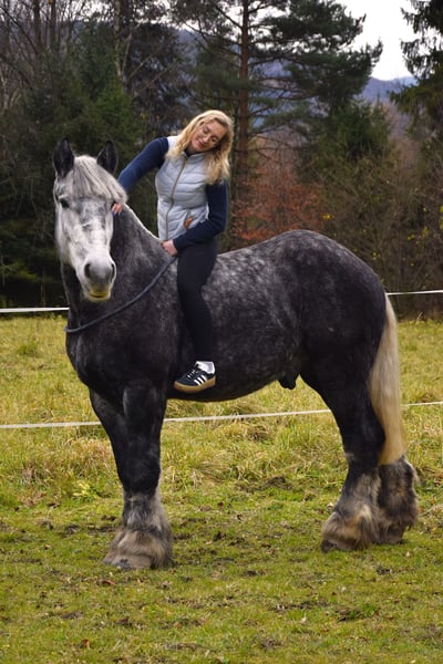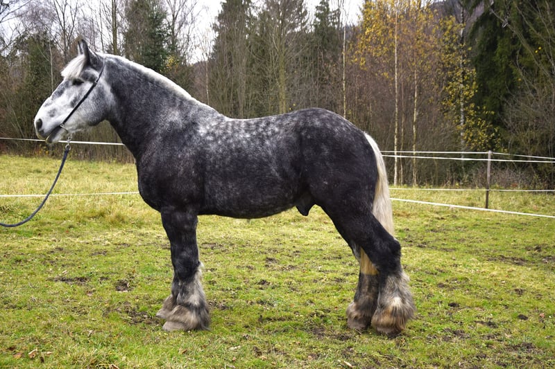 Zum Verkauf steht ein wunderschöner polnischer Kaltbluthengst, geboren im Jahr 2022. Ein beeindruckender grauer, apfelschimmelfarbener Rappe mit einer Größe von 180 cm. Ideal für die Freizeitgestaltung, bewährt und ruhig im Wesen. Eine hervorragende Gelegenheit für Liebhaber von robust gebauten Pferden mit sanftem Charakter. Problemlos bei Pflege-, Tierarzt- und Hufpflegearbeiten, freundlich beim Schmied – zuverlässig auf allen vier Beinen. Qłantek besitzt ein außergewöhnliches Temperament, ist äußerst gelassen und unerschütterlich – nichts bringt ihn aus der Ruhe. Das ganze Jahr über auf der Weide gehalten. Der Transport verläuft ebenfalls problemlos, er reist bequem im Anhänger. Perfekt geeignet für Kutschfahrten im Einzel- oder Paarverband – ideal als Begleiter in der Land- oder Urlaubstouristik oder für jemanden, der einen lieben Freund zum Spazieren im Wald sucht. Bitte kontaktieren Sie mich via WhatsApp.