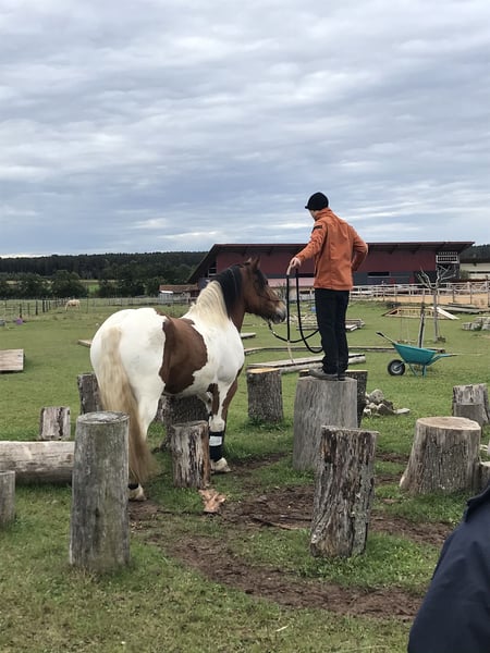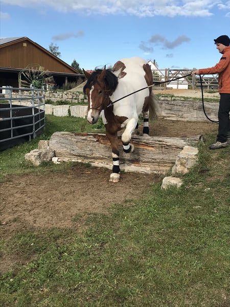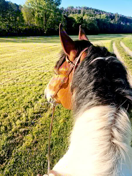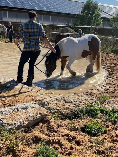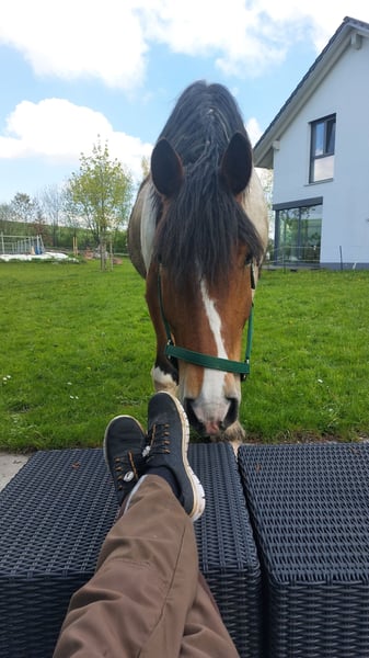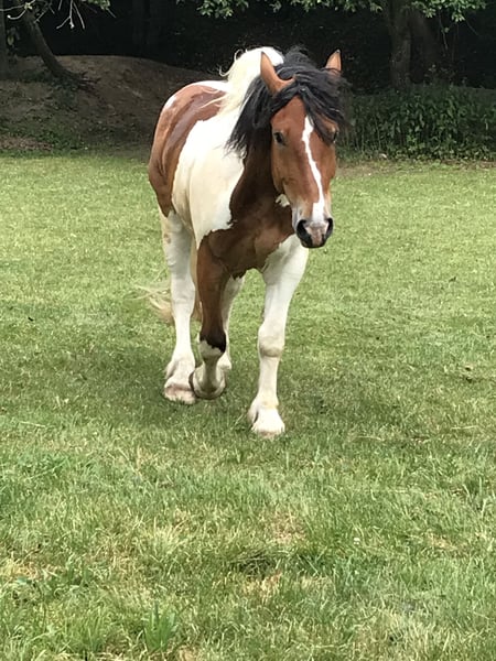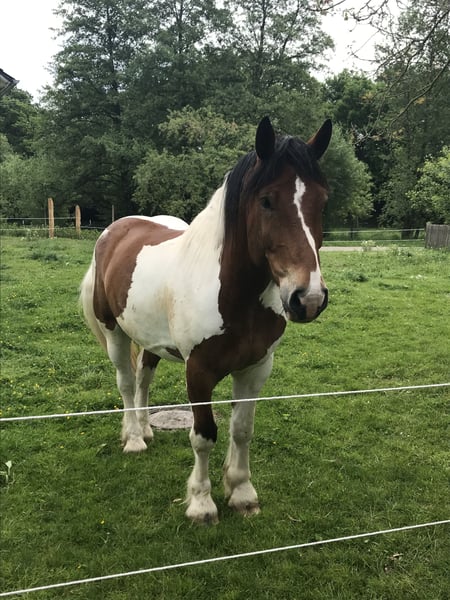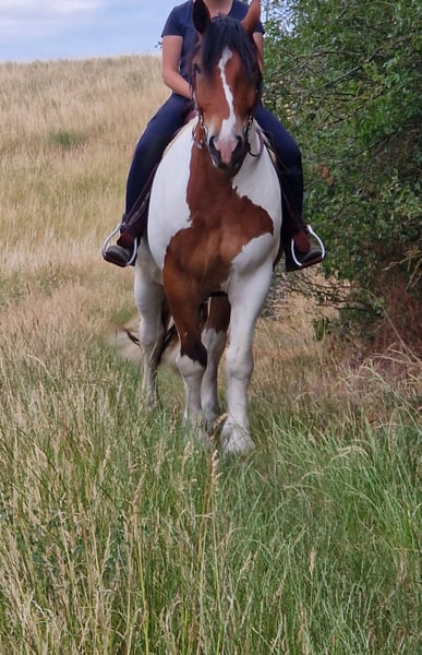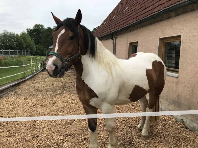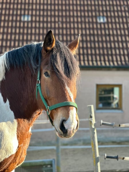 Wir suchen für unseren polnischen Kaltblut-Wallach einen neuen Wirkungskreis. Leider werden wir seinem Potential zeitlich nicht gerecht und hoffen auf diesem Weg ein passendes 5 Sterne zu Hause zu finden. Juri ist ein Schecke mit toller Zeichnung und einem liebevollen Wesen und viel Potenzial für den ambitionierten Freizeitreiter. Er ist dem Menschen gegenüber aufgeschlossen und man wird von Weiten immer mit einem Wiehern begrüßt. Steckbrief Alter: 12 Jahre Größe: 160 cm Rasse: Polnisches Kaltblut mit polnischen Abstammungspapieren Farbe: Schecke Eignung: Kein Anfängerpferd Haltung: kennt Offenstall- und Boxenhaltung Ausbildung & Einsatzbereich: Juri wird freizeitmäßig geritten und bringt dabei auch auf dem Reitplatz Dressurpotenzial mit (auch wenn man es seiner Statur nicht ansieht). Gesundheit & Pflegezustand Juri ist schmiede- und verladefromm, läuft barhuf und ist regelmäßig geimpft sowie entwurmt. PSSM liegt bei ihm NICHT vor. Er hat eine leichte Mauke an den Hinterbeinen – rassetypisch und bereits seit jungen Jahren vorhanden. Diese breitet sich nicht aus und beeinträchtigt ihn in keiner Weise. Zudem hat Juri eine Milbenallergie (Laborbefunde liegen vor). In den Übergangszeiten und im Sommer kann es dadurch zu Juckreiz, vor allem an Mähne und Bauchnabel, kommen. Dieser ist gut händelbar und lässt sich mit einer Creme, die alle zwei Tage aufgetragen wird, zuverlässig in den Griff bekommen. Im Sommer ist außerdem das Tragen einer Fliegendecke mit enganliegendem Bauchlatz wichtig, um zusätzlichen Juckreiz durch Insekten zu vermeiden. Beim Vorbesitzer zeigte er hier keine Problematik, vielleicht kann dies durch einen Stallwechsel behoben werden. Osteopathisch untersucht, keinerlei Gelenksprobleme. Beschreibung Juri liebt Ausritte – sowohl in der Gruppe als auch alleine. Im Gelände ist er motiviert und keineswegs triebig. Er ist jedoch kein Anfängerpferd, da er seine Umwelt stets aufmerksam wahrnimmt und sich auch mal erschrecken kann. Dabei bleibt er jederzeit kontrollierbar und ist kein Durchgänger. Der Reiter sollte souverän sein und sich nicht von seinen gelegentlichen „fünf Minuten“ beeindrucken lassen, wenn er auf dem Ausritt gerne etwas flotter unterwegs wäre. Juri ist ein sehr liebevolles, sensibles und loyales Pferd, das eine ruhige und sichere Hand benötigt. Er reagiert stark auf die Stimmung und Körpersprache seines Reiters: Ist man selbst entspannt, ist er es auch – bei Anspannung spiegelt er diese unmittelbar wider. Auf dem Platz zeigt Juri eine schnelle Auffassungsgabe, lernt ausgesprochen zügig und bietet von sich aus Lektionen an. Mit feiner Hand und am langen Zügel geritten, reagiert er hervorragend auf Gewichtsverlagerung und Schenkelhilfen. Er ist ein Pferd, das Beschäftigung, Aufmerksamkeit und regelmäßige Bewegung braucht – für ein- bis zweimal Reiten pro Woche ist er daher nicht geeignet. Wanderritte sowie Trail-Parcours kennt er bereits. Auch Traktoren, Zugmaschinen und verschiedene Tiere sind ihm vertraut; in dieser Hinsicht zeigt er sich unerschrocken. Zubehör Der maßangefertigter Westernsattel kann gerne miterworben werden (1.800 € inkl. Lammfellpad und Trense). Der Sattel ist 3,5 Jahre alt und wurde speziell angepasst, da kein Standardsattel passend war. Weiteres Zubehör wie verschiedene Decken kann ebenfalls erworben werden. Um Reittourismus vorzubeugen, berechnen wir 40 € pro Person für jedes Probereiten, Vorreiten oder Geländeritt. Dieser Betrag wird beim Kauf selbstverständlich angerechnet. Wir bitten ausschließlich um ernst gemeinte und seriöse Anfragen mit einer kurzen, aussagekräftigen Vorstellung. Für Juri suchen wir einen absoluten Bestplatz. Es besteht keinerlei Zeitdruck. Juri wird nicht schnell oder „an den Erstbesten“ verkauft. Uns ist es wichtig, die zukünftigen Besitzer in Ruhe kennenzulernen.