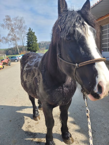 Verkaufe polnischen Kaltblut-Wallach, geborenen im Jahr 2021. Der elegante Rappe überzeugt durch sein freundliches Wesen und seine beeindruckende Erscheinung. Mit einem Stockmaß von aktuell 155 cm ist er perfekt für den Freizeitbereich geeignet aber er brauch noch einiges an Ausbildung. Er ist sehr menschen bezogen aber zeigt auch mal einen was er in sich hat KEIN ANFÄNGERPFERD! Leider kann ich ihm auffrund meiner krankheit nicht die weitere ausbildung geben die er brauch. Denn ab und an ist er sehr unsicher. Er kennt Boxenhaltung und offenstall das er bevorzugt. Man muss ihm noch einiges zeigen und erarbeiten aber wenn man sein herz hat versucht er zu gefallen. Er ist laut vorbesitzer geritten und gefahren. Ich selbst habe ihn ein paar mal geritten in schritt und trab auch ein kurzer gallopp haben wir schon gemacht. Er ist beim schmied artig aber da hat er manchmal Schwierigkeiten lange zeit mit zu machen. Zähne wurden im Januar 26 gemacht. Impungen wurden gemacht muss im februar 27 wiederholt werden. Wenn man erfahrung hat kann man ein richtigen diamanten formen. Bei Interesse freue ich mich auf Ihre Kontaktaufnahme.