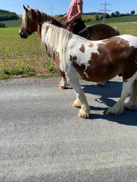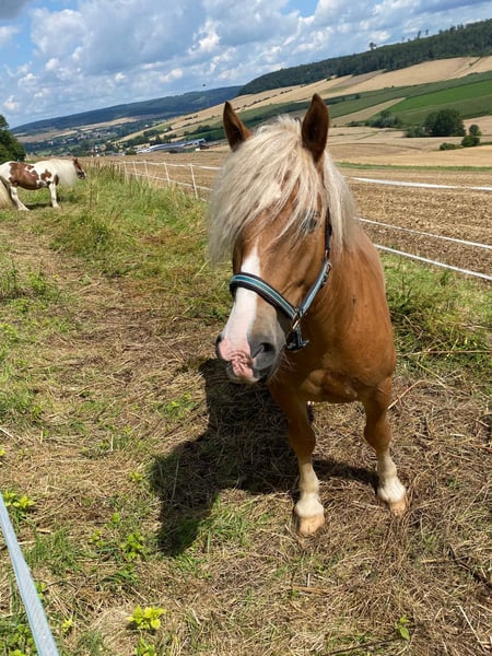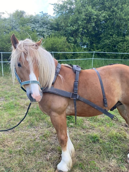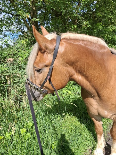 Verkaufe polnisches Kaltblut – eleganter Wallach Zum Verkauf steht ein wunderschöner polnischer Kaltblut-Wallach, geboren im Jahr 2019. Dieser charmante Fuchs mit langer blonder Mähne begeistert durch sein freundliches Wesen und seine beeindruckende Erscheinung. Mit einem Stockmaß von 155 cm ist er perfekt für die Freizeitgestaltung geeignet. Das Pferd ist gut ausgebildet und arbeitet gerne mit. Er ist freundlich im Umgang, verkehrssicher und eignet sich hervorragend für entspannte Ausritte, Spaziergänge und die tägliche Freizeitgestaltung. Er kennt Dressurgrundlagen, Bodenarbeit, Longen Arbeit, ist an das Geschirr gewöhnt, hat aber noch nicht gezogen. Er hat einen raumgreifenden fleißigen Schritt und lässt sich im Trab und Galopp jederzeit regeln. Er geht sowohl alleine, als auch in der Gruppe ins Gelände und kennt es, dass ein Pony als Führpferd in allen Gangarten mitläuft. Seine robuste Konstitution und sein angenehmer Charakter machen ihn zu einem idealen Freizeitpartner. Aufgrund seines Alters ist er kein reines Anfängerpferd. Er ist personenbezogen, mag klare feine Hilfen und macht für ein oder zwei feste Bezugspersonen alles mit. Er ist nicht die Idealbesetzung für Reitschulen, Voltigieren oder häufig wechselnde Reiter. Aktuell steht er nachts im Stall und tagsüber auf der Wiese oder Paddock. Im Sommer geht er auch ganz auf die Weide. Zurzeit steht er mit einem Ponykumpel zusammen, er kennt auch Wallachherde. Sein Ponykumpel sucht ebenfalls ein neues Zuhause. Zu "Verladefromm": Wir haben keinen Anhänger zum regelmäßigen Üben. Mit ein wenig Geduld und Leckerlies ist er bisher immer auf den Anhänger gegangen. Zum "Zubehör": Er kann mit Trense, Decken, Longier Zubehör, Putzzeug, Halftern etc. abgegeben werden. Es gibt zwei passende neuwertige Sättel. Einen Sattelglück Dressur und einen Grandeur Fellsattel. Der Preis für die Sättel ist nicht im Verkaufspreis enthalten. Bei Interesse oder weiteren Fragen stehe ich Ihnen gerne zur Verfügung. Vereinbaren Sie einen Termin, um dieses tolle Pferd persönlich kennenzulernen!
