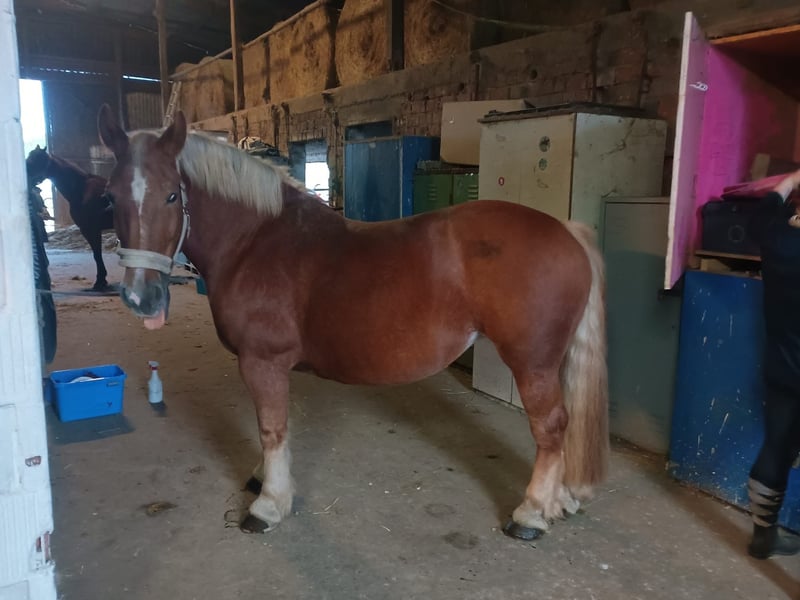 Ich stelle eine 10-jährige Stute zur Verfügung. Sie ist ein 1,50 m großer Kaltblut und wird freizeitmäßig geritten. Die Stute ist brav im Umgang, kinderlieb und auch für Anfänger gut geeignet. Zudem ist sie rangniedrig, läuft problemlos barhuf und bekommt ausschließlich Heu sowie Mineralfutter. Sie zeigt sich sowohl im Gelände als auch auf dem Platz ausgeglichen und unkompliziert und ist ideal für Reiter, die ein ruhiges und verlässliches Pferd suchen.