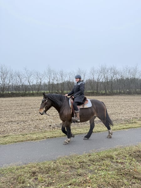 Jaga is a 10-year-old Polish cold-blood mare! She has been ridden and driven. I have had her for almost exactly one year. She is used for single driving and recreational riding. She was not familiar with an indoor arena before, but now she goes there very calmly! Even children can ride her. She enjoys riding in groups in the terrain, but can also go alone, as long as the route is clearly indicated to her. She is very unshakable around tractors, trucks, cars, bicycles, and all kinds of vehicles. Jaga is lively and spirited, with plenty of energy, but always manageable. She is not a desperate need to sell! Feel free to contact me for more information: 0173 9460269.