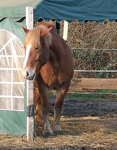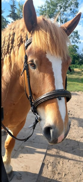 Ich suche für meine liebe polnische Kaltblut Stute Bella eine zuverlässiges und liebevolles neues Zuhause. Wenn du ein zuverlässiges Pferd suchst, dass bequem zu sitzen ist und dich zuverlässig trägt, dann könnte Bella die richtige für dich sein. Bella ist auch für einen Anfänger geeignet, aber du solltest dich durchsetzen können oder jemanden haben der dich unterstützt. Zu Bella: Sie ist 160cm groß und 12 Jahre alt. Sie geht gern ins Gelände. Am Liebsten mit Begleitung, aber wenn sie ihrem Reiter vertraut auch alleine. Sie kennt Longieren und Bodenarbeit. Die Dame ist am Anfang meist bei allem etwas faul, aber wenn man dran bleibt macht sie dann doch gerne mit und man merkt das sie auch viel Spaß dabei hat. Bella ist eine liebe, verschmuste und zuverlässige Stute. Klar hat sie auch ihren kleinen Sturrkopf, aber mit etwas überzeugung ist sie sehr gut zu handeln. Bella wird Freizeitmäßig mit lockerem Zügel geritten. Sie ist kein Dressurpferd und wird auch nie eins werden. Sie ist ein top Verlasspferd das im Gelände unheimlich viel Spaß macht, da sie durch ihr ruhiges Gemüt kaum durch etwas zu erschrecken ist. Auch mal quer durch den Wald oder neue Wege erkunden findet sie toll und ist mit voller Begeisterung dabei. Auf dem Reitplatz wiederum brauchst du Durchsetzungsvermögen, da sie den langweilig findet. Sie da vorwärts zu bringen ist die ersten Minuten anstrengend. Aber wenn du sie mal überzeugt hast, ist sie voll dabei. Bella wurde von ihrem Vorbesitzer auch eingefahren. Damals war sie 4 Jahre alt und war seitdem nicht mehr an eine Kutsche gespannt. Aber ich denke auch das würde sie suverän mit etwas Übung und Geduld meistern. Bella wird nur in Offenstallhaltung mit Herdenhaltung abgegeben. Sie braucht den Kontakt zu anderen Pferden, da sie auch mal gerne mit ihnen spielt und rum rennt. Ebenso wird sie nur an eine Privatperson als Freizeitpferd abgegeben. Dies ist kein Zwangsverkauf. Ich kann mich aus Gesundheitlichen und Zeitlichen Gründen nicht so um sie kümmern wie sie es verdient hat und wie es nötig wäre. Die Maus wird mit allem Zubehör (Halfter, Strick, Sattel, Decken, Putzzeug abgegeben)