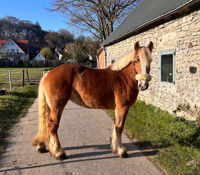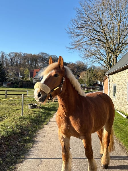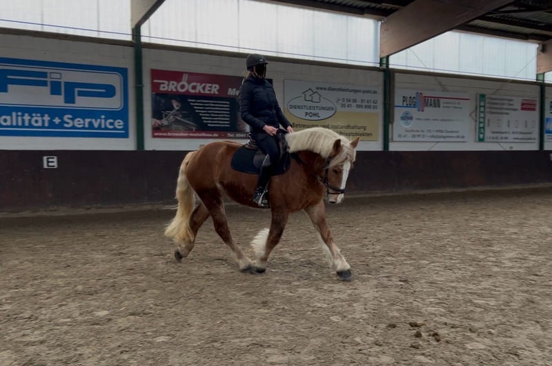 Unsere liebenswerte Blondie mit traumhaftem Charakter sucht ihren neuen Möhrchengeber. Die 4-jährige Stute überzeugt durch ihr freundliches, unkompliziertes und sehr menschenbezogenes Wesen. Sie genießt jede Art von Zuwendung – ob Putzen, Schmusen oder einfach Zeit mit ihrem Menschen verbringen. Sie zeigt keinerlei Unarten und hat volle Papiere. Aktuell hat sie ein Stockmaß von ca. 1,55m und deckt auch größere Reiter gut ab. Unterm Sattel will Blondie immer gefallen und lernt wirklich schnell. Sie ist stets brav, rittig und Händelbar und gibt dem Reiter ein gutes und sicheres Gefühl. Aktuell wird sie dressurmäßig gearbeitet. Hier zeigt sie sich kooperativ und ist einfach und fein zu reiten. Blondie hat drei schöne und ausbaufähige GGA. Besonders gerne geht Blondie ins Gelände. Ob alleine oder in der Gruppe – sie zeigt sich souverän, zuverlässig und nicht schreckhaft. Auch Bodenarbeit bereitet ihr viel Freude, sie arbeitet motiviert mit und möchte alles richtig machen. Damit ist sie ein idealer Partner für den gehobenen Freizeitbereich mit weiterem Entwicklungspotenzial. Sie ist natürlich schmiede und verladefromm und verträglich mit Stuten, sowie mit Wallachen. Videos senden wir gerne auf Anfrage zu. Für ein Probereiten wird eine Gebühr von 20€ erhoben, um Reittourismus zu vermeiden. Bei Kauf wird diese selbstverständlich verrechnet.