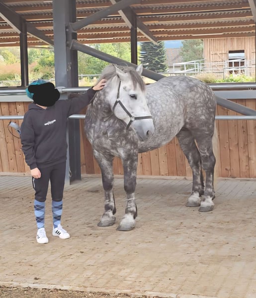 Leider muss ich meine 6 Jährige Polnische kaltblut Stute Luna verkaufen. Ich habe Luna vor knapp 2 Wochen als 'Familienfreundliches Pferd' von einem Händler gekauft, der sie selber ausgebildet hat. Sie ist geritten, sowohl auf dem Platz, im Gelände als auch in der Halle und einspannig Kutsche gefahren. Allerdings ist sie nicht das 'Familienfreundliche' Pferd als das sie mir verkauft wurde. Luna benötigt einen konsequenten Besitzer, der ihr klare Regeln und Grenzen vorgibt. Demnach ist sie NICHT für Anfänger oder Wiedereinsteiger geeignet. Ich bin mir sicher, wenn man Luna konsequent die Regeln und Grenzen zeigen kann, ist sie ein toller Begleiter. Das alles kann ich ihr leider nicht in dem Ausmaß bieten, wie sie es benötigt. Dadurch reißt sie sich bei mir immer wieder los und drängt mich im Paddock weg. Ansich ist Luna ein sehr verschmustes und menschenbezogenes Pferd. Probereiten und Probefahren ist leider nicht möglich, dah ich keinen Sattel oder Kutsche für sie habe. Aktuelle AKU ist noch von ihrem Vorbesitzer vorhanden, kann aber natürlich auch gerne von einem eigenen Tierarzt durchgeführt werden. Weitere Videos oder Bilder sind auf Anfrage möglich. Bei Interesse gerne über die App oder per Whatsapp (017622286712) schreiben.