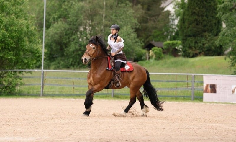 Verkaufe hier meine 8 jährige polnische Kaltblutstute im sportlichen Typ. Sie wird bei mir Einspänner gefahren, ist beim Züchter aber auch Zweispänng gelaufen. Sie ist zuverlässig und sicher vorm Wagen. Ich spannend sie auch alleine an und fahre mit ihr alleine aus. Beim reiten zeigt sie ihren sportlichen Typ und hat Spaß an kleinen Dressur Aufgaben. Sie geht alleine und in der Gruppe ins Gelände. Bodenarbeit und Logieren sind ebenfalls Bestandteil ihrer Ausbildung. Sie ist voll beschlagen, lässt sich super alleine verladen und ist beim Hänger fahren sehr brav. Sie ist nervenstark, keine Durchgängerin und zeigt schöne fleißige Gänge. Orientierungsritte und fremde Umgebung /Halle/ Reitplatz ist sie geowhnt. Sie einen typischen eigenwilligen Kaltblutkopf und testet ihr gegenüber gerne und oft aus. Eine durchsetzungsfähiger und konsequenter Umgang ist für Jaschka also sehr wichtig. Sie kennt Offenstall und Bodenhaltung und ist mit Stuten und Wallachen verträglich. Zähne wurden in April gemacht, Tetanus Impfung ist aktuell. Wer also eine Freizeitpartner mit pfiff für Fahren und Reiten sucht hat mir ihr Kollege in n tollen Partner an der Seite. Equipment wie Kutsche, satttel, Trense, Geschirr ect können mit erworben werden.