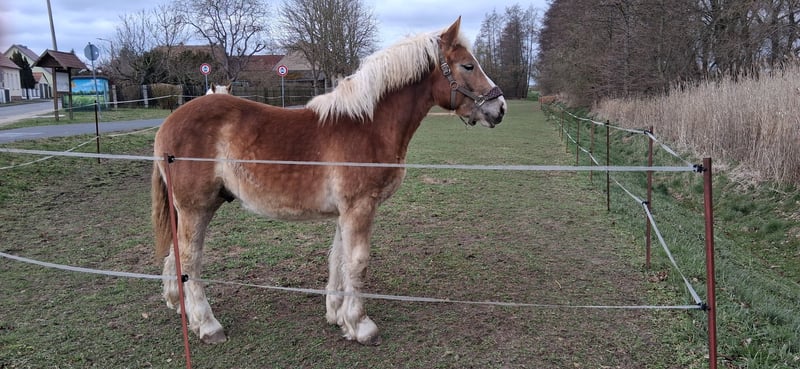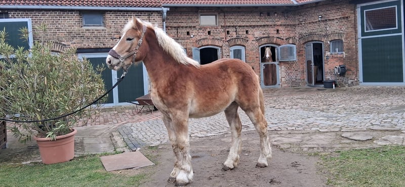 Zum Verkauf steht unser typvolles rh.dt. Kaltblut-Hengstfohlen in der Farbe Fuchs mit hellem Behang und einer sehr schönen Doppelmähne. Ural überzeugt durch seine guten Grundgangarten, einem korrektem Fundament sowie durch seine aufgeschlossene, dem Menschen zugewandte Art. Vater ist der Landbeschäler des Landgestütes Moritzburg, Urmel, Bundesreservesieger 2017. Ural kennt selbstverständlich das Fohlen-ABC, ist halfterführig, wird regelmäßig dem Hufschmied vorgestellt, geht brav auf den Pferdeanhänger, ist mehrfach entwurmt und geimpft. PSSM-Status: n/n (über die Eltern)