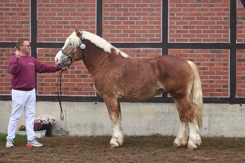 Zum Verkauf steht ein selbstgezogener beeindruckender Rheinisch-Deutsches Kaltblut Hengst, geboren im März 2023. Der Fuchs ist ein kräftiges und elegantes Pferd mit einem Stockmaß von 164 cm. Er zeichnet sich durch seine ruhige und ausgeglichene Art aus, ideal für den zukünftigen Einsatz im Fahren und Reiten. Bei Interesse oder für weitere Informationen stehe ich Ihnen gerne zur Verfügung. Besichtigungen sind nach Absprache möglich. Sowie Vater und Mutter können bei uns kennengelernt werden.