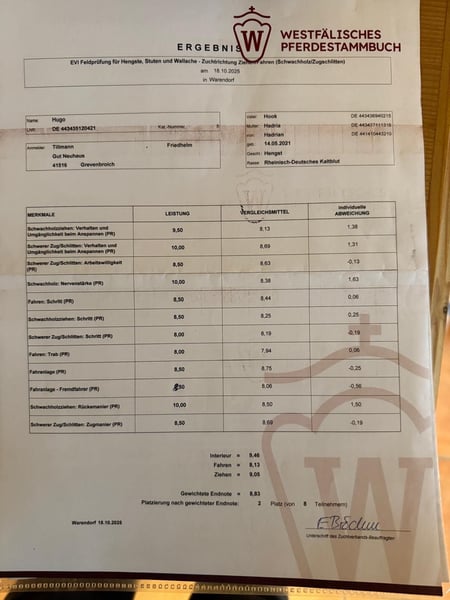 *** Per favore, inviate le vostre richieste tramite WhatsApp al 017624297968 *** Hugo è un stallone approvato con una eccellente prova sul campo EVI. È montato e trainato, e si distingue per il suo carattere estremamente facile e collaborativo. Un stallone che entusiasma per le sue prestazioni, il suo aspetto esteriore e il suo temperamento!
