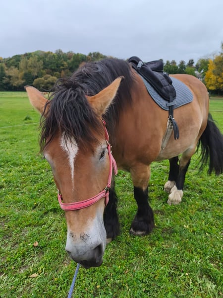 Verkauft wird eine liebe Kaltblutstute. Sie ist 8 Jahre alt und hat ein Stockmaß von 1.70m. Sie kennt Bodenarbeit. Lässt sich gern putzen und betuddeln. Im führen ist sie lieb und brav. Bei Interesse einfach schreiben oder anrufen.