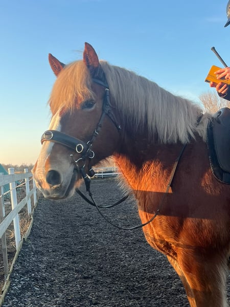 „Dora“ liebe kräftige Stute mit Kutsch- und Reiterfahrung Schwerenherzens: Zum Verkauf steht unsere Stute Dora, ein Großpferd ohne Rassebezeichnung, optisch vermutlich ein Haflinger-Kaltblut-Mix. Alter: 9 Jahre Stockmaß: ca. 1,58 Gesundheit & Pflege: ✔ gechippt ✔ regelmäßig geimpft und entwurmt ✔ tierärztlich untersucht ✔ zuverlässig beim Hufschmied Dora ist gesund ! Ausbildung & Nutzung: Dora wurde klassisch als Kutschpferd eingesetzt und zusätzlich ca. 8 Monate angeritten und beritten. Sie ist sicher in allen drei Gangarten. Charakter & Umgang: Dora ist äußerst lieb, menschenbezogen und sehr brav im Umgang. Putzen, führen und kuscheln liebt sie. Sie ist tiefenentspannt, nicht schreckhaft und durch ihre Kutscherfahrung absolut straßensicher. Gleichzeitig kann sie auch stur und eher bequem sein – sie ist kein Pferd, das von selbst antreibt. Wichtig: ➡ Kein Anfängerpferd! Sie gehört in erfahrene Hände mit ruhiger, konsequenter Führung. 📍 Standort: Hohenbruch, Oberhavel,16775