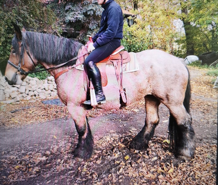 7-year-old Cold Blood mare, Dutch Draft Horse with an excellent pedigree, chestnut with flaxen mane and tail, 1.65 m tall, well-trained and successfully used for breeding. She is now seeking a new activity or purpose. Her yearling colt by Albrecht von Schernikau, a Rheinisch-Deutsches Kaltblut from 2025, is also a purebred Cold Blood. He is halter-trained, familiar with handling and the foal ABC, can lift his feet and be led daily without issues. He is also available for sale. Both horses are very people-oriented. €1,300 for the colt. Please contact only by phone; emails cannot be answered due to time constraints. Repeated attempts may be necessary. Mobile: 01706701756