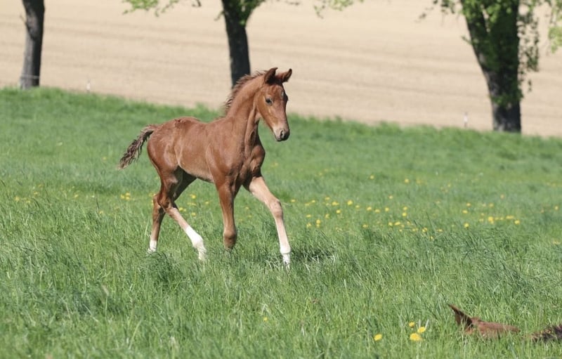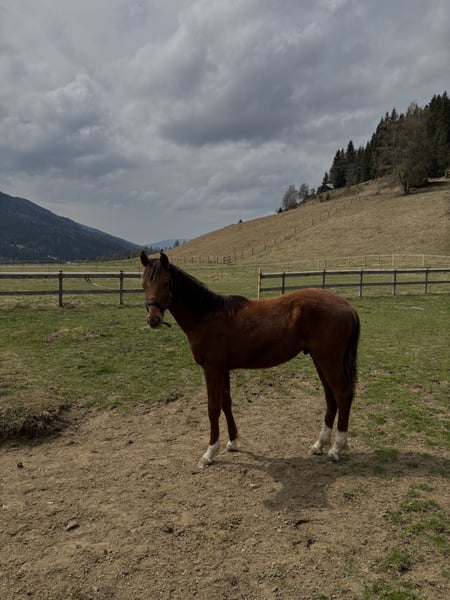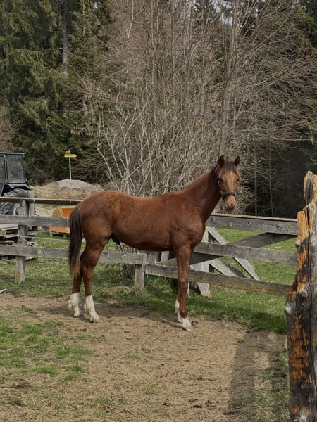 Schweren Herzens muss ich aus gesundheitlichen Gründen mein einjähriges Hengstfohlen in fördernde Hände abgeben. Der junge Mann ist halfterführig und beherrscht das Fohlen-ABC. Er ist in der Herde aufgewachsen und kennt die Weidehaltung mit anderen Pferden, wodurch er sozial gut integriert und im Umgang angenehm ist. Charakterlich überzeugt er mit einem freundlichen, aufgeschlossenen Wesen sowie einem klaren, ausgeglichenen Temperament. Besonders hervorzuheben sind seine vielversprechenden Grundgangarten. Als Vitalis Nachkomme bringt er beste Voraussetzungen für eine erfolgreiche Zukunft im Sport oder in der Zucht mit. Ich wünsche mir für ihn ein liebevolles, förderndes Zuhause, in dem er weiterhin artgerecht aufwachsen und sich entwickeln darf. Abstammung: Vitalis - Donnerhall - Pilot Dunkelfuchs, 4x weiß wird wahrscheinlich 170cm groß Bei Interesse Kontaktaufnahme bitte über WhatsApp - 06606993309