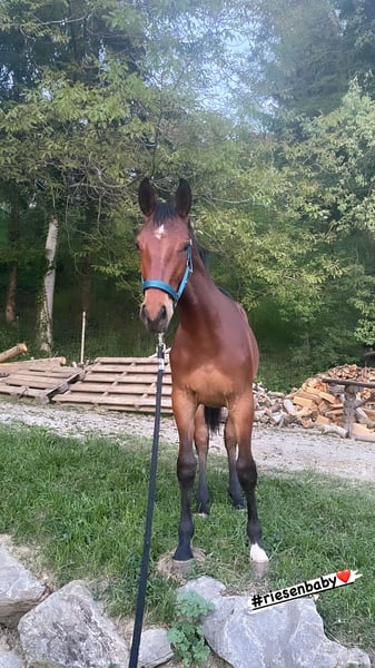**Sales Advertisement: Young Austrian Warmblood** For sale is a promising stallion from the year 2023. **Breed:** Austrian Warmblood **Color:** Brown **Height:** currently approx. 165 cm **Suitability:** Show jumping This talented young stallion impresses with his movements and balanced temperament. He is well-suited for show jumping and already shows promising potential in his training. His friendly nature makes him an ideal partner for ambitious riders who are looking for a promising young talent. If you are interested or need further information, please feel free to contact me. Viewings are possible by appointment. We look forward to your message!