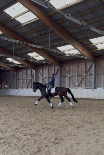 ‚Vier Jahreszeiten’, oder ‚Viero’ wie er von uns genannt wird, ist ein 10 jähriger ÖWB Wallach, ca 172cm Stockmaß, Dunkelbraun, Abstammung V: Vivaldi x MV: Davignon II Viero ist ein sehr braver, liebeswürdiger Wallach, sehr kuschelbedüftig, absolut Herdenverträglich. Im Gelände ist er sehr brav, sowohl beim Ausreiten, als auch beim Spazieren, im Gelände nicht schreckhaft, kennt Straßenverkehr, Traktoren, Hunde etc. Er verfügt über drei sehr gute GGA. Unter dem Reiter zeigt er sich motiviert, lernwillig und mit guter Grundeinstellung. Er benötigt einen Reiter, der ihm Sicherheit gibt, da er sehr sensibel ist, in Stresssituationen wird er manchmal schnell, braucht daher eine sichere Reiterhand, aber kein Steigen oder Buckeln! Reiterlich befindet er sich mit der Dressurarbeit auf solidem M Niveau (fliegende Wechsel, Trab- und Galopptraversalen, Schritt Pirouette etc), S Lektionen (zb Serienwechsel etc) werden gerade erarbeitet. Mehrmals wöchentlich bekommt er Beritt. Natürlich ist er absolut Schmied- und Verladefromm (geht regelmäßig auch in Auswärtstrainings). Derzeit noch nicht auf dem Turnier vorgestellt, wäre Anfang 2026 geplant. Ein älterer TÜV ist vorliegend ohne Befund, regelmäßig geimpft und entwurmt Preis VB 20.000€, nach geplanter Turniervorstellung wird der Preis steigen! Bitte telefonische Kontaktaufnahme unter: +43 676 6419041 Videos und mehr Fotos gerne per PN Probereiten jederzeit möglich Standort: Oberösterreich, Bez. Ried im Innkreis