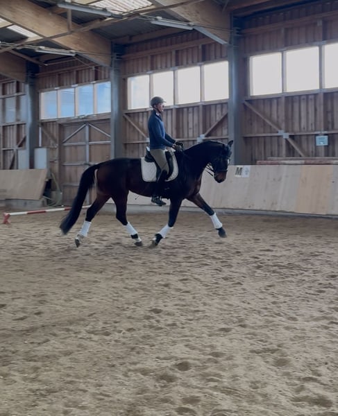 'Four Seasons', or 'Viero' as we call him, is a 10-year-old Austrian Warmblood gelding, approximately 172 cm at the withers, dark bay in color, sired by Vivaldi out of a Davignon II mare. Viero is a very well-behaved, affectionate gelding who loves cuddles and is completely herd-safe. In the field, he is very calm and well-behaved, both when hacking out and during walks. He is not spooky in the terrain, is familiar with road traffic, tractors, dogs, etc. He has three very good gaits. Under saddle, he is motivated, eager to learn, and has a solid basic attitude. He requires a rider who can provide him with security, as he is quite sensitive. In stressful situations, he can become quick-tempered, so a confident rider is necessary. However, he does not rear or buck! Therefore, suitable mainly for brave riders. In dressage, he is working at a solid M level, with S-level movements (such as flying changes) currently being developed. He is ridden several times a week. He is completely shoe- and loading-safe (regularly taken to external training sessions). He has not yet been shown at competitions, but this is planned for 2026. An older veterinary certificate is available without any findings. He is regularly vaccinated and dewormed. Price negotiable. Please contact us by phone at: +43 676 6419041 Videos and more photos gladly available via private message. Test rides possible at any time. Location: Upper Austria, Ried im Innkreis district.