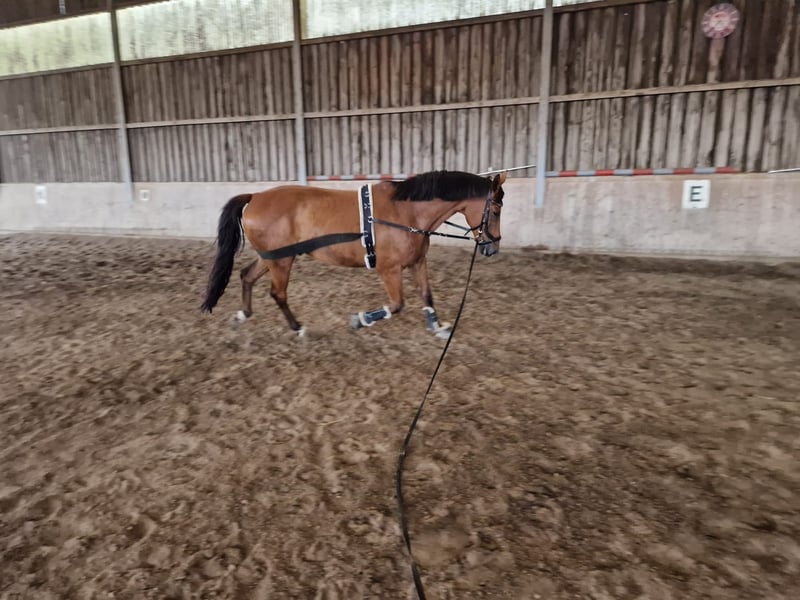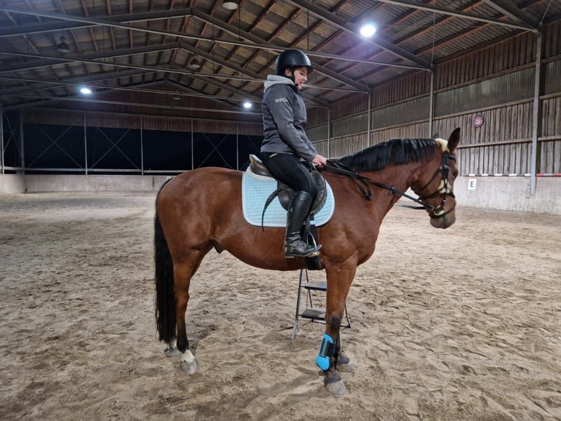 Hallo, schweren Herzens verkaufe ich meinen 15 Jährigen Wallach Non Plus Ultra kurz gesagt Noni. Er liebt Ausreiten über alles und zeigt sich dabei besonders ruhig und brav. Mit etwas Vertrauen geht er auch gerne alleine ins Gelände, ebenso zuverlässig ist er in der Gruppe, egal an welcher Position. Hier ist er wirklich ein Pferd für jedermann. Auch die Bodenarbeit macht ihm große Freude: motiviert, aufmerksam und mit Spaß an der Sache. Auf dem Reitplatz braucht Noni allerdings einen erfahrenen Reiter. Für Anfänger ist er hier nicht geeignet, da er eine klare, ruhige Hilfengebung schätzt. Hier bringt er sehr viel GO mit. Aufgrund seiner Diagnose Kissing Spines kann Noni nicht mehr gesprungen werden. Dies beeinträchtigt ihn im Alltag jedoch nicht - er kommt damit gut zu recht. Charakterlich ist Noni ein absoluter Schatz, total verschmust, menschenbezogen und für jeden quatsch zu haben. Da ich mehr in den Springsport gehen möchte, suche ich für Noni ein liebevolles Zuhause, in dem er geschätzt wird und weiterhin abwechslungsreich beschäftigt weden darf, besonders im Gelände und in der Bodenarbeit.