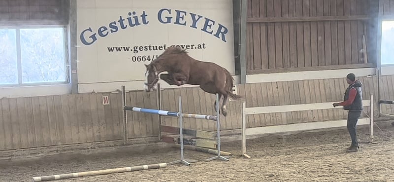 Mit viel Übersicht springender Youngster, der nicht nur super schick ist, sondern auch mit Technik am Sprung und Vermögen zu überzeugen weiß! Der bald 4 jährige ist angeritten und zeigt sich sehr brav und unkompliziert!