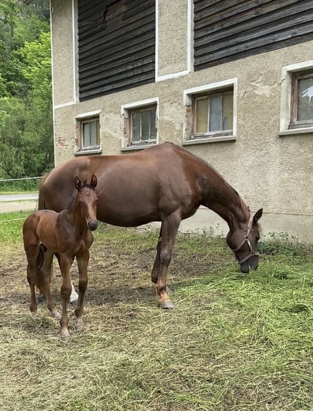 Fair Play – my first foal I raised myself, making him a very special horse for me. From the very first second, I felt I knew this horse. Fair Play is exceptionally well-behaved and uncomplicated for his age, both in handling and under saddle. His primary discipline is clearly dressage. However, he is also familiar with small hacks and small jumps, which he always approaches very calmly. He is excellent when leading, loading, on the turnout, grooming, and tacking up. As a foal, he competed at the championship in Oisnitz and was later invited to the championship in Stadl-Paura. He was backed last year and is now being trained in the three basic gaits. Due to his size and age, he is familiar with lateral work, rein-back, leg-yields, transitions, and extensions. He hasn't needed to do more than that with me so far. He knows lunging and ground work and performs them willingly. Thanks to his size, he is very suitable for tall women or men alike. He is very easy to ride and can be ridden with just two fingers. I am looking for someone who is seeking a young, special horse and enjoys a thorough training process and a lifelong partner. Because that is exactly what Fair Play is. Further information available upon request.