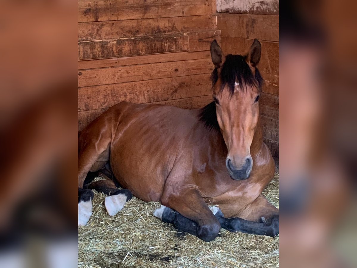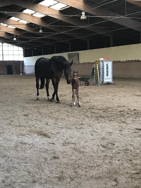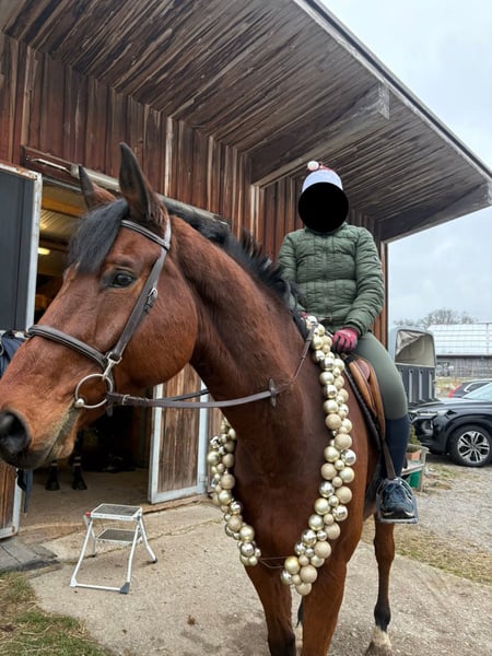 Zum Verkauf steht ein selbstgezogener, 8-jähriger Wallach mit einem Stockmaß von ca. 168 cm. Mit seiner Mutter war ich im Springsport erfolgreich, dementsprechend bringt er Talent und Freude am Springen mit. Er selbst verfügt jedoch noch über keine Turniererfahrung. Unter dem Reiter überzeugt er mit angenehmen, komfortablen Gängen. „I'm Johnny“ kennt sowohl Boxenhaltung mit Schrittmaschine als auch Offenstall und zeigt sich in beiden Haltungsformen unkompliziert. Hufschmied und Verladen sind für ihn selbstverständlich. Er ist regelmäßig geimpft und entwurmt. Knapp ein Jahr war er im Schulbetrieb im Einsatz und wurde dort auch von Kindern geritten, was seinen guten Charakter unterstreicht. Im Gelände ist er brav, geht alleine ausreiten sowie auch in Begleitung, sogar mit Hund. Aktuell ist er vorne beschlagen. Im Umgang zeigt er sich sehr sozial, verschmust und stark menschenbezogen. Für Johnny wird ein geduldiger, liebevoller und erfahrener Reiter gesucht, der ihm die nötige Zeit gibt, Vertrauen aufzubauen und ihm in manchen Situationen Sicherheit vermittelt. In einzelnen Momenten benötigt er etwas mehr Rückhalt durch seinen Reiter. Da er Ekzemer ist, wäre eine Haltung mit viel Bewegung und wenig Weide von Vorteil. Bei der richtigen Person ist der Preis Verhandlungsbasis. Probereiten nach Absprache gegen 30 €, um Reittourismus zu vermeiden. Bei ernsthaftem Kaufinteresse wird dieser Betrag selbstverständlich angerechnet.