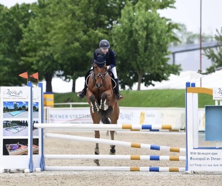 Zum Verkauf steht ein 2017 geborener, 9-jähriger Wallach, der sich als unkomplizierter und ruhiger Sportpartner zeigt. Er ist im Springsport bis L ausgebildet. Auf Turnieren konnte er bereits Erfahrung bis 115 cm sammeln und präsentiert sich dort ruhig, zuverlässig und souverän im Parcours. Der Wallach ist solide ausgebildet und lässt sich unkompliziert reiten. Er kennt seine Aufgaben, arbeitet ehrlich mit und ist sowohl im Training als auch auf dem Turnier ein angenehmer Partner. Besonders hervorzuheben ist sein sehr einfaches Handling: Er ist im täglichen Umgang absolut brav, schmiedefromm und verladefromm, lässt sich problemlos führen und pflegen – auch von Personen ohne große Pferdeerfahrung – und bleibt dabei stets gelassen und unkompliziert. Auch auf Turnieren zeigt er sich unaufgeregt und angenehm im gesamten Ablauf. Weitere Informationen, Videos oder ein Kennenlernen gerne auf Anfrage.