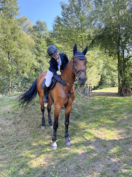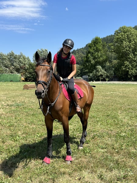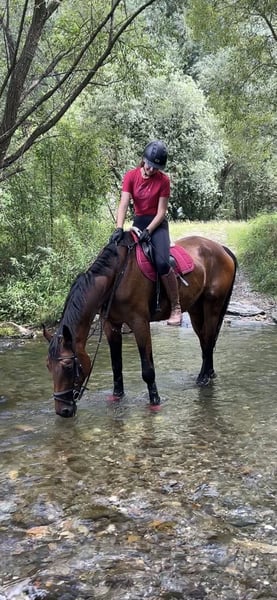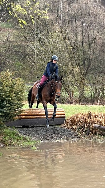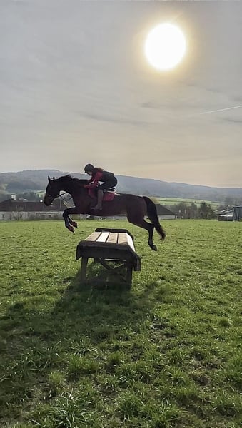 Schweren Herzens suche ich für meine Österreichische Warmblutstute ein neues, liebevolles Zuhause. Sie ist eine tolle Allrounderin: In der Dressur beherrscht sie Lektionen bis Klasse M, im Training springe ich mit ihr Parcours bis 110 cm und in der Vielseitigkeit war sie bis Klasse A unterwegs. Sie eignet sich hervorragend als sicherer Freizeitpartner, bei dem man in Ruhe weiterlernen und Freude am gemeinsamen Arbeiten haben kann. Innerhalb der gut 3 Jahre in meinem Besitz, hat sie mich nach nur einer Woche durch die Reiternadel getragen, dann folgte die Lizenz und wir starteten gemeinsam bis Vielseitigkeit der Klasse A. Im Umgang ist sie absolut brav und unkompliziert. Sie ist gesund, herdenverträglich, schmiede- und verladefromm, kennt Auswärtstrainings und zeigt sich dort souverän. Sie geht gerne ins Gelände – allein ebenso wie in der Gruppe. Sie ist für jeden Spaß zu haben: Halsringreiten, ohne Sattel reiten, Boden- /Freiarbeit, Freispringen, Geschicklichkeitsreiten. Wichtig ist mir die ehrliche Anmerkung, dass sie nicht als Turnierpferd fürs Springen abgegeben wird, da sie auf Springturnieren nicht zuverlässig ist. Für Gymnastik, Cavaletti, Parcours im Training und vielseitige Arbeit ist sie jedoch ideal und motiviert. Ich wünsche mir für sie einen verantwortungsvollen Bestplatz mit abwechslungsreicher Beschäftigung. Probereiten ist nach Absprache möglich.