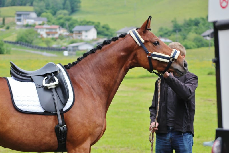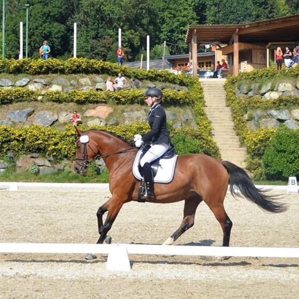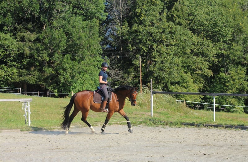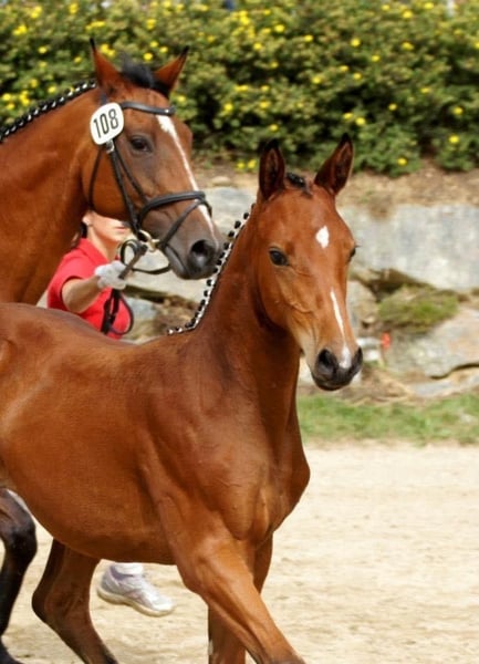 For Sale – Mare *Alveradis* (2011) I am offering my lovely and characterful mare Alveradis, born in 2011, who impresses with her willingness to work, friendly nature, and presence. ### 🐴 Training & Achievements * Successfully competed in dressage tests at the A** level * Achieved a score of 8.0 in her victory * Did not continue competitive training due to a relocation * Continued training up to M-level dressage * Also solidly trained in L-level show jumping ### 🩺 Health Alveradis suffered a suspensory branch bruise with accompanying inflammation in 2024, which has fully healed. Currently, she is not in training, so I am offering her primarily as a broodmare or alternatively as a companion horse. ### 🌿 Character & Management * Very friendly, open, and pleasant in daily handling * Currently kept with a gelding in the paddock. At night, she is housed in a box, which she also needs as a retreat. * Due to her temperament and interesting pedigree, I can very well imagine her as a broodmare. (Sire: Smashing Hit, Dam Sire: Sandro Hit, Dam: Anhaltiner E) ### 📸 Note on the pictures The last two photos show Alveradis as a foal.