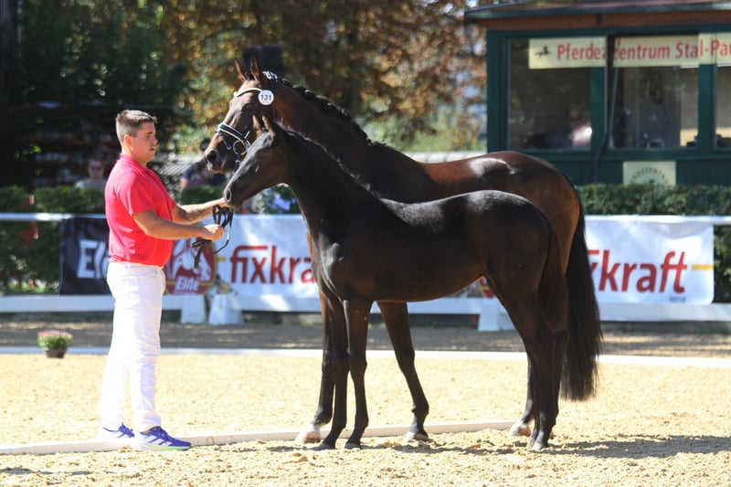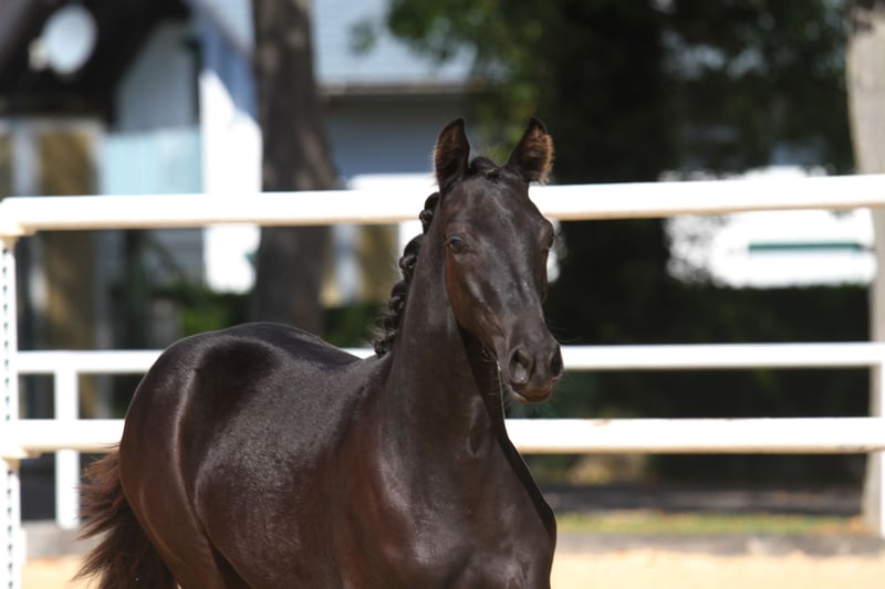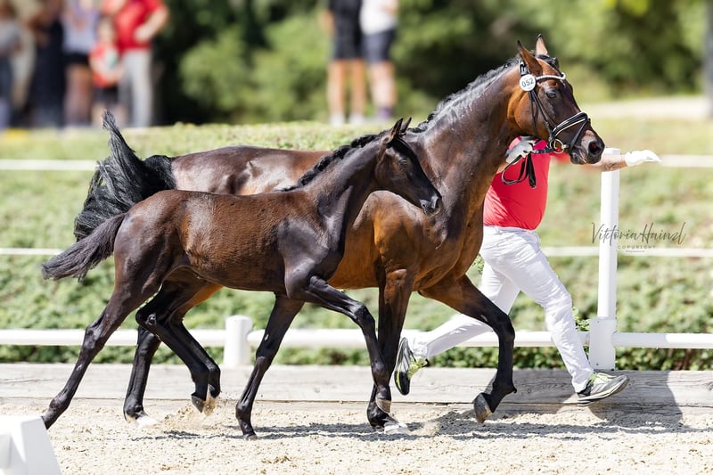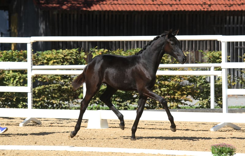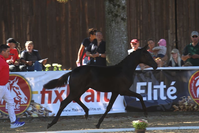 Ausdrucksstarkes und typstarkes Rappstutfohlen (Jahrgang 2025) mit bester Dressurabstammung zu verkaufen. Dieses Fohlen vereint Charme, Qualität und Charakter auf höchstem Niveau. 🏆 Erfolge: Reservesiegerin beim Landeschampionat 4. Platz beim Bundeschampionat Typ: 9,0 Exterieur: 8,0 Fundament: 8,0 Bewegung: 9,0 Ein Fohlen, das durch seine Bewegungsqualität, Präsenz und Ausstrahlung begeistert – ein echtes Juwel für Zucht und Sport! Mutter: Bambi (v. Benicio x Romanov) Absolvierte erfolgreich die Stutenleistungsprüfung Bis Klasse M erfolgreich platziert Beherrscht Lektionen der Hohen Schule Herausragender Charakter: Rittig, leistungsbereit und menschenbezogen