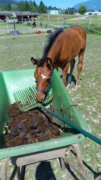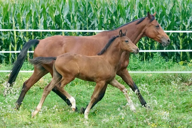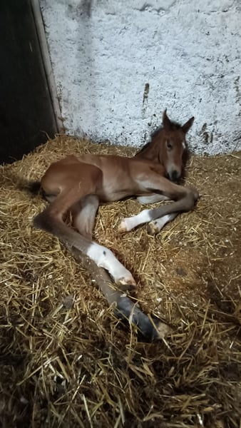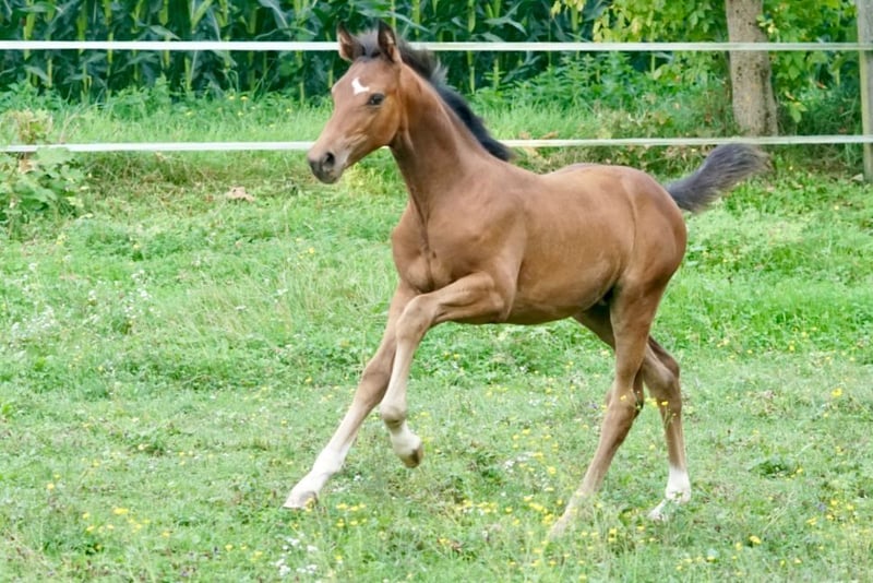 Zum Verkauf steht hier "Ranjana" von Sky (Gut Schönweide) aus der Verbandsprämienstute Raffinesse von Revanche de Rubin (Rubin Royal OLD). Ranjana stammt aus dem Stutenstamm der Amonka, aus dem mehrere Grand Prix-Pferde und gekörte Hengste, wie beispielsweise Total Diamond stammen. Ranjana ist ein vielversprechendes und bildhübsches Stutfohlen mit dem Wow Faktor, schon allein durch ihr auffälliges Abzeichen am Kopf. Sie wurde im Mai 2025 geboren und besticht durch Ihr makelloses Exterieur, ihre Schönheit und Ihre Bewegungen, die Lust auf mehr machen. Die Mutter selbst ist Verbandsprämienstute, die sowohl bei der Stutbuchaufnahme, als auch bei der Materialprüfung als 2. Reservesiegerin hervorging. Mit Qualifikation für das Bundeschampionat in Stadl-Paura, wo sie nur knapp den Einzug ins Finale verpasste. Ihre Feldleistungsprüfung konnte sie ebenso mit dem 3. Platz absolvieren. Ihr erstes Fohlen wurde zum Elitefohlen gekürt und erhielt die Qualifikation zum Bundeschampionat. Der Vater Sky (Gut Schönweide) ist längst kein unbeschriebenes Blatt mehr und in aller Munde. Er war Publikumsliebling der Körung der Hannoveraner 2020 und begeisterte bei jeder Vorstellung, wo er sich als Prämienhengst kürte. 2025 konnte sich Sky auf Anhieb für das Bundeschampionat qualifizieren. Seine erste S*Dressur konnte er auf Anhieb mit dem 3. Platz beenden. Es folgte ein 2. Platz in der S* mit über 71%. Ein auffällig bunter, moderner und erfolgreicher Hengst mit dem Charakter aus Gold. Ranjana kennt das Fohlen-ABC und ist brav im Umgang. Sie hat ein freundliches, menschenbezogenes Wesen und zeigt sich im Alltag offen, aufmerksam und lernwillig. Unsere Fohlen werden regelmäßig entwurmt, dem Schmied vorgestellt und steigen brav in den Hänger ein. Bei Interesse oder für weitere Informationen stehe ich gerne zur Verfügung. Besichtigungen sind nach Absprache möglich.
