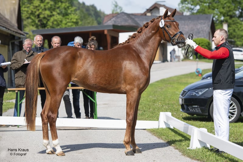 For Sale: Austrian Warmblood – Elegant Dressage Mare Available is a stunning Austrian Warmblood mare, born in 2021. She features an impressive dark chestnut coat and impresses with her attractive appearance and gentle temperament. Standing at 16.1 hh, she is the perfect size for ambitious riders who value quality and versatility. Her dressage training shows promising progress, and she already demonstrates solid fundamentals in her gaits. This talented mare is ideally suited for upper-level dressage and offers great potential for further development. She is regularly vaccinated, well cared for, and comes with a veterinary certificate. Please feel free to contact me for more information. Viewing and test rides can be arranged by appointment.