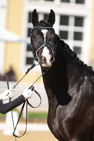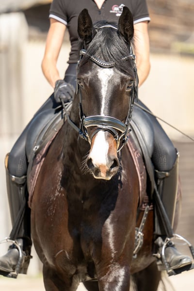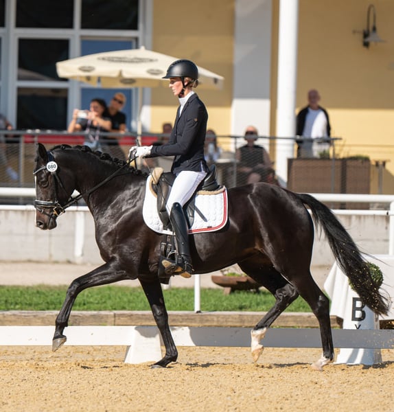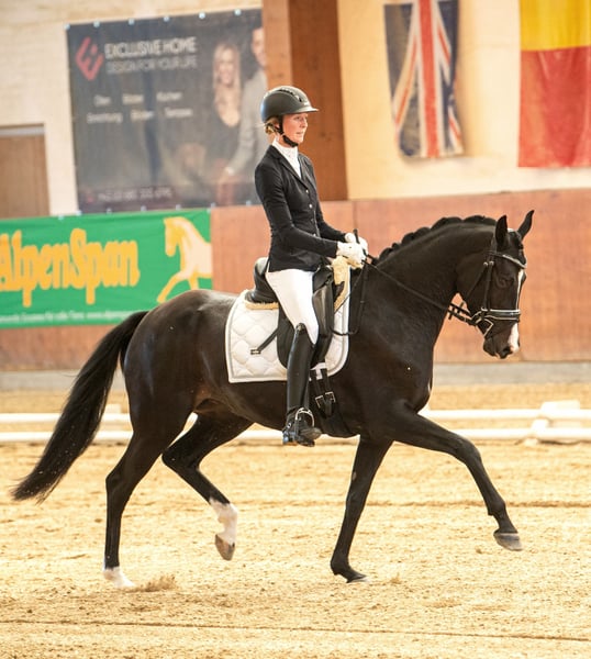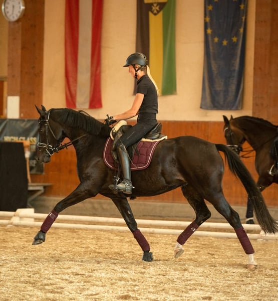 Charismatic young mare with excellent basic gaits and plenty of drive, combined with the right work ethic. Standing approximately 1.63 m, she is suitable for young riders and pony transitioners. Reserve champion at the foal championship. Competed, won, and placed in A and L show jumping classes. At four years old, she participated in the Bundeschampionat in Stadl-Paura. L-level lessons are well-established, and she is currently on the way towards M-level and L-level tests. Can be ridden alone or in a group; she has already mastered small jumps. Due to her top pedigree, she is also interesting for breeding purposes. Further information, photos, and videos available upon request. Trial rides possible by arrangement.